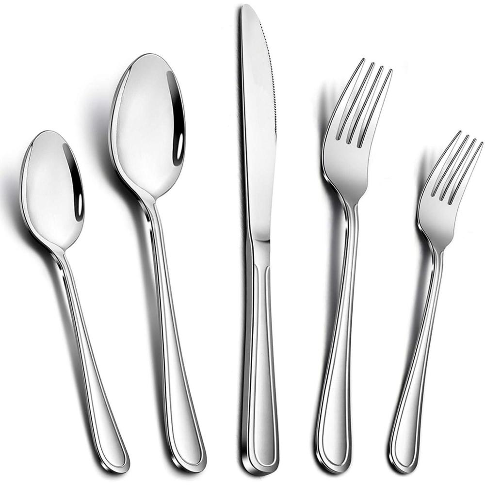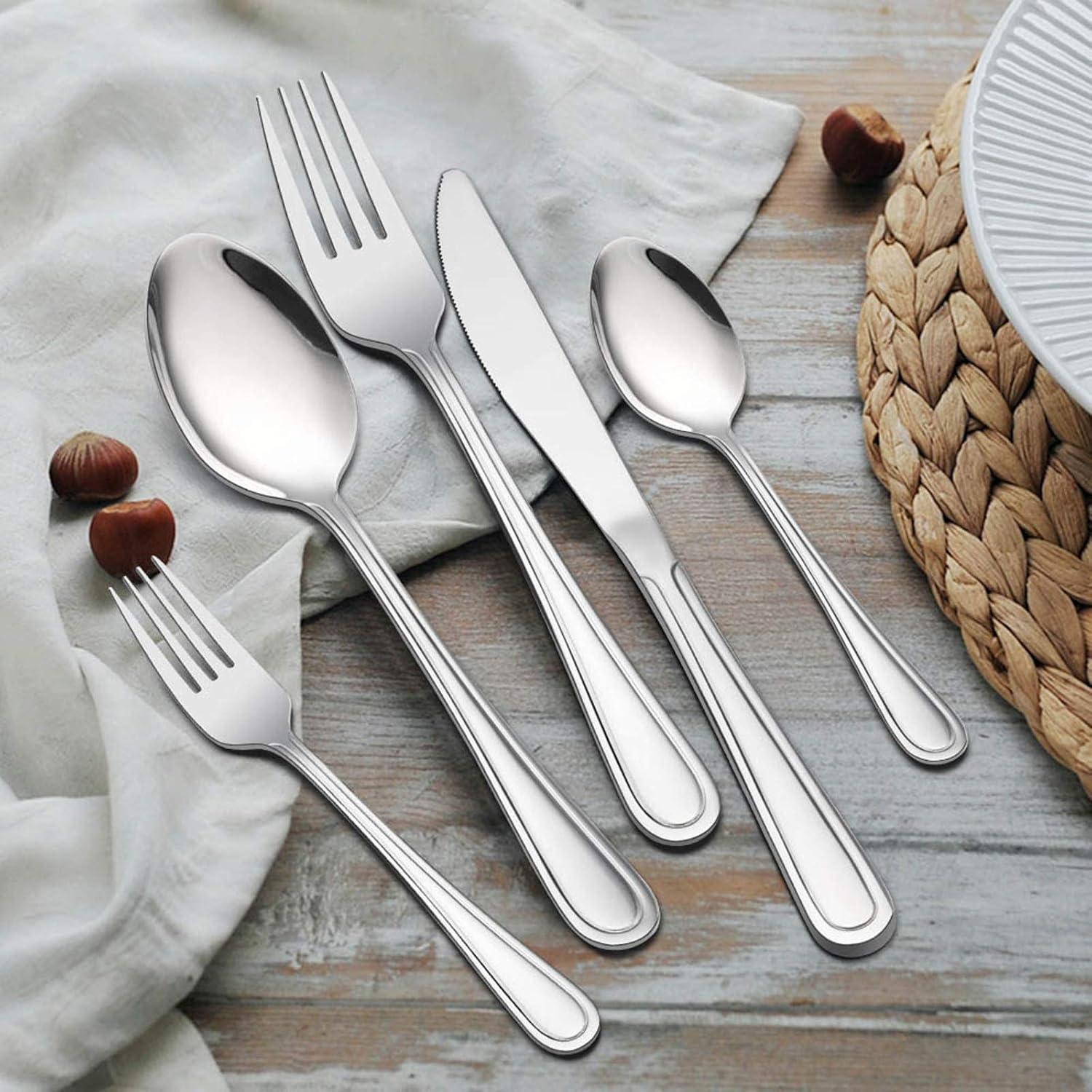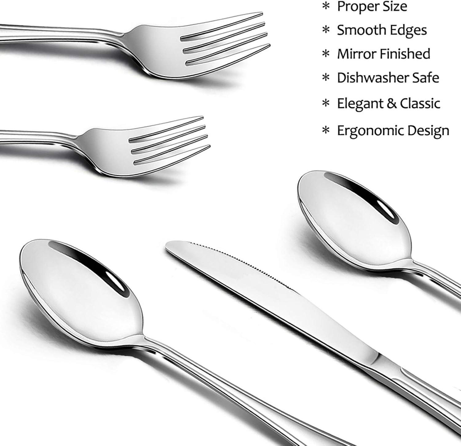 12 PLACE SETTING – E-far 60 pieces stainless steel silverware set includes 12 of each: Dinner Fork, Dinner Spoon, Dinner Knife, Salad Fork and Teaspoon, Easy clean and dishwasher safe