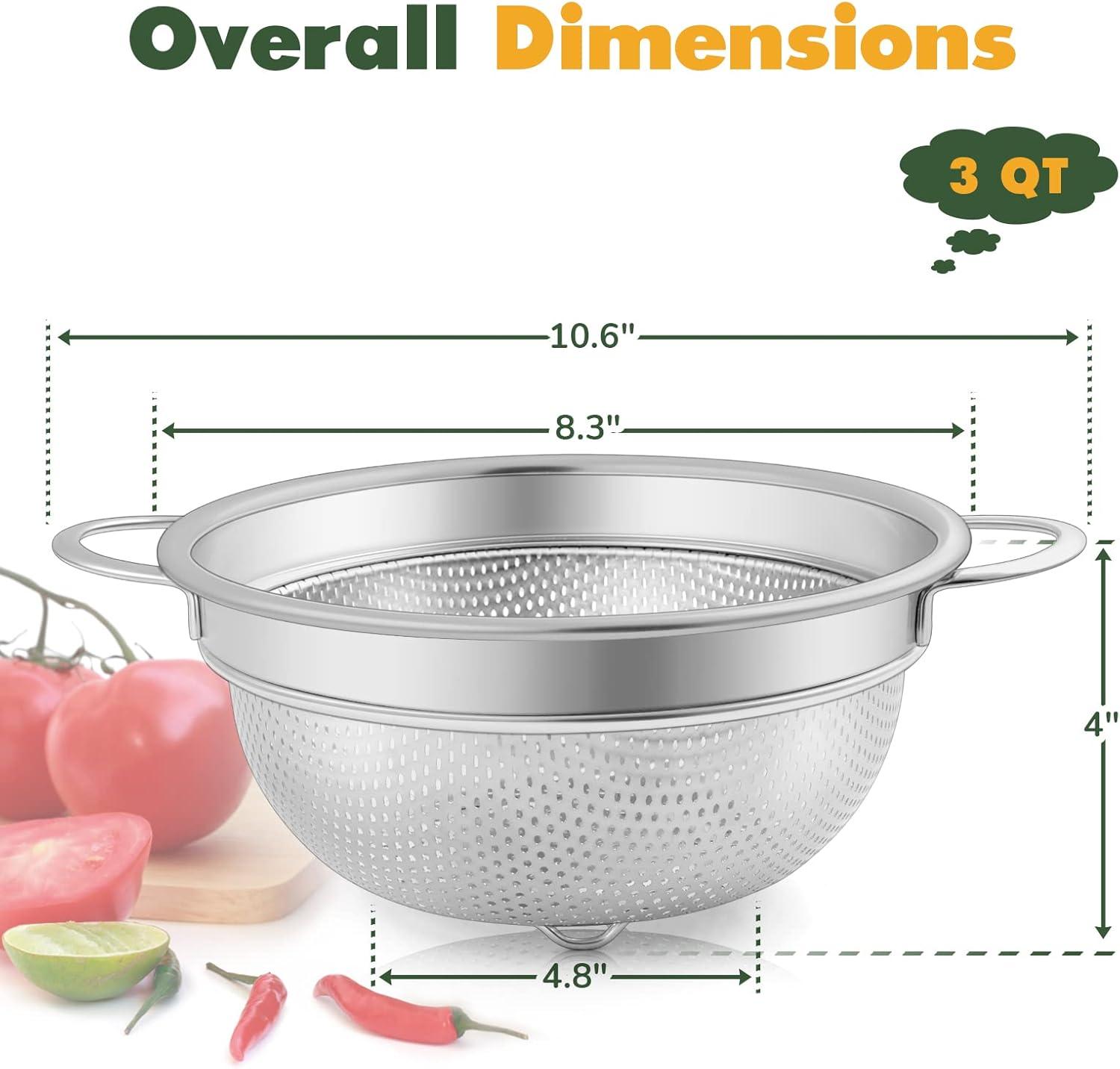 MULTIPURPOSE – 3-Quart compact size takes up less storage space, Perfect for those who are cooking for 1-2 people, Ideal for rinsing small amounts of fruits and vegetables, straining pasta and potatoes, washing rice, quinoa and other grain, Also can be used as a steamer for pot