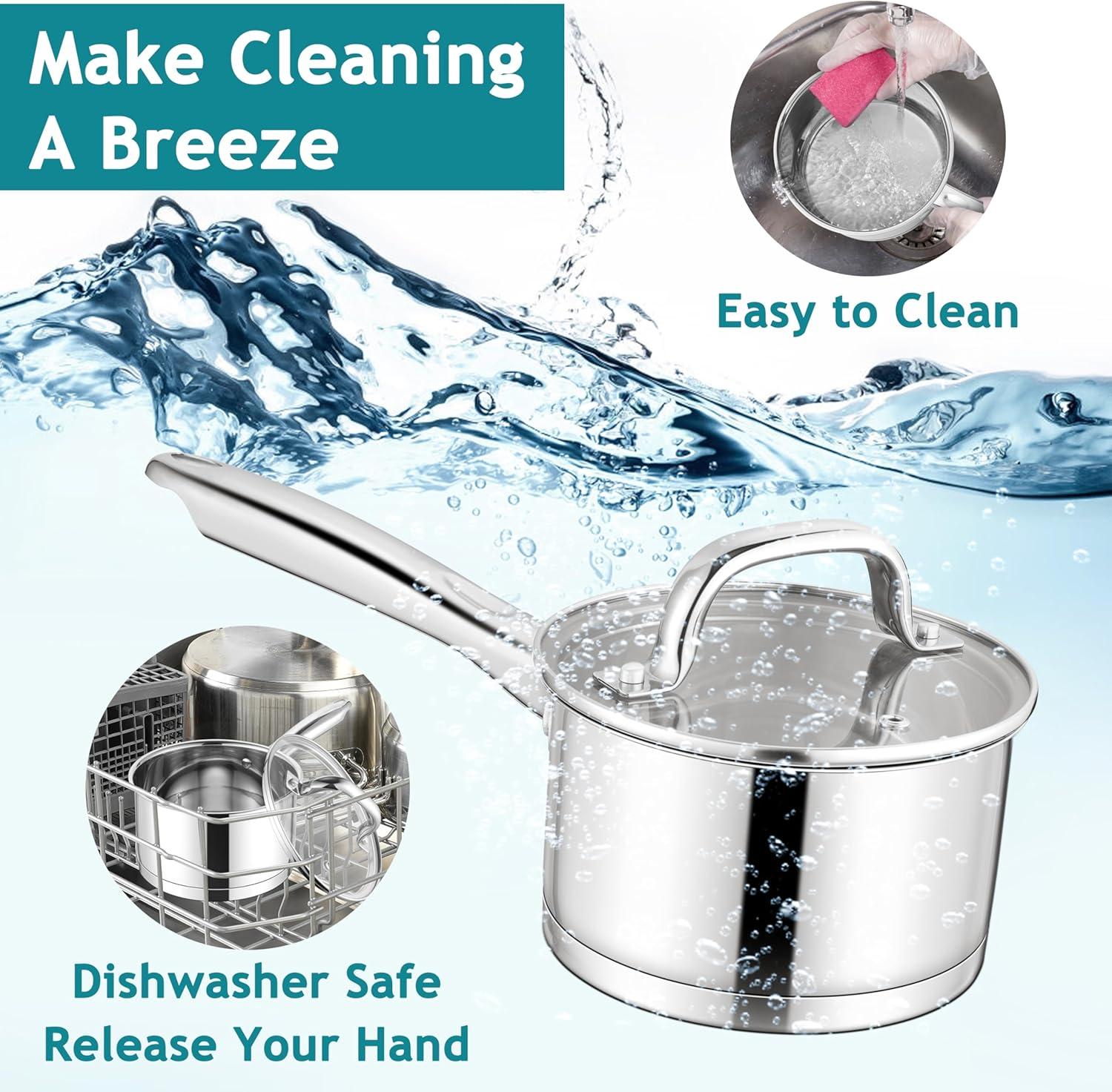 imageEfar 1 Quart Saucepan with Lid Stainless Steel Small Sauce Pan Boiling Pot for Cooking Compatible with All Stoves Healthy ampamp Non Toxic Oven ampamp Dishwasher Safe1QT  2QT  3QT