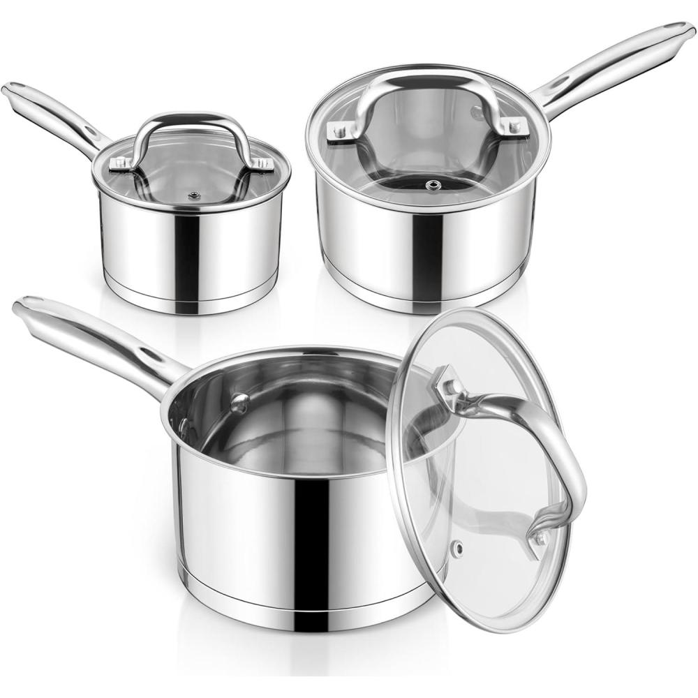 E-far 1 Quart Saucepan with Lid, Stainless Steel Small Sauce Pan Boiling Pot for Cooking, Compatible with All Stoves, Healthy & Non Toxic, Oven & Dishwasher Safe(1QT & 2QT & 3QT)