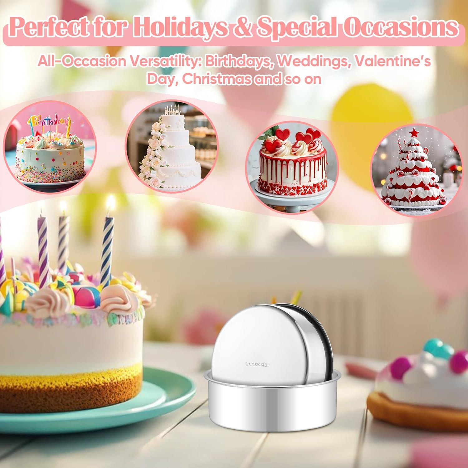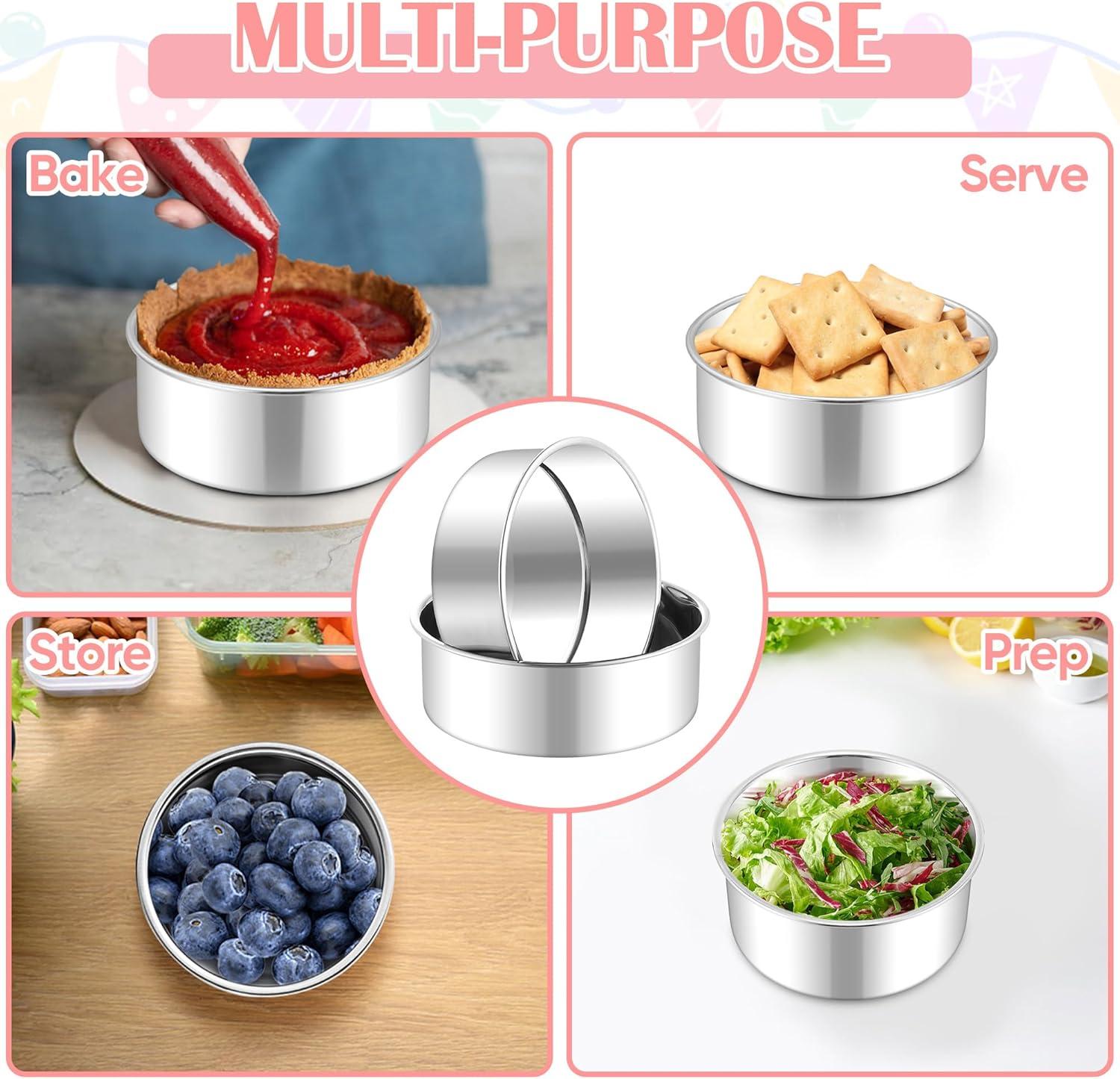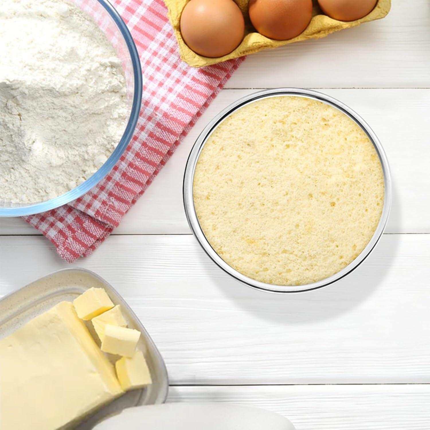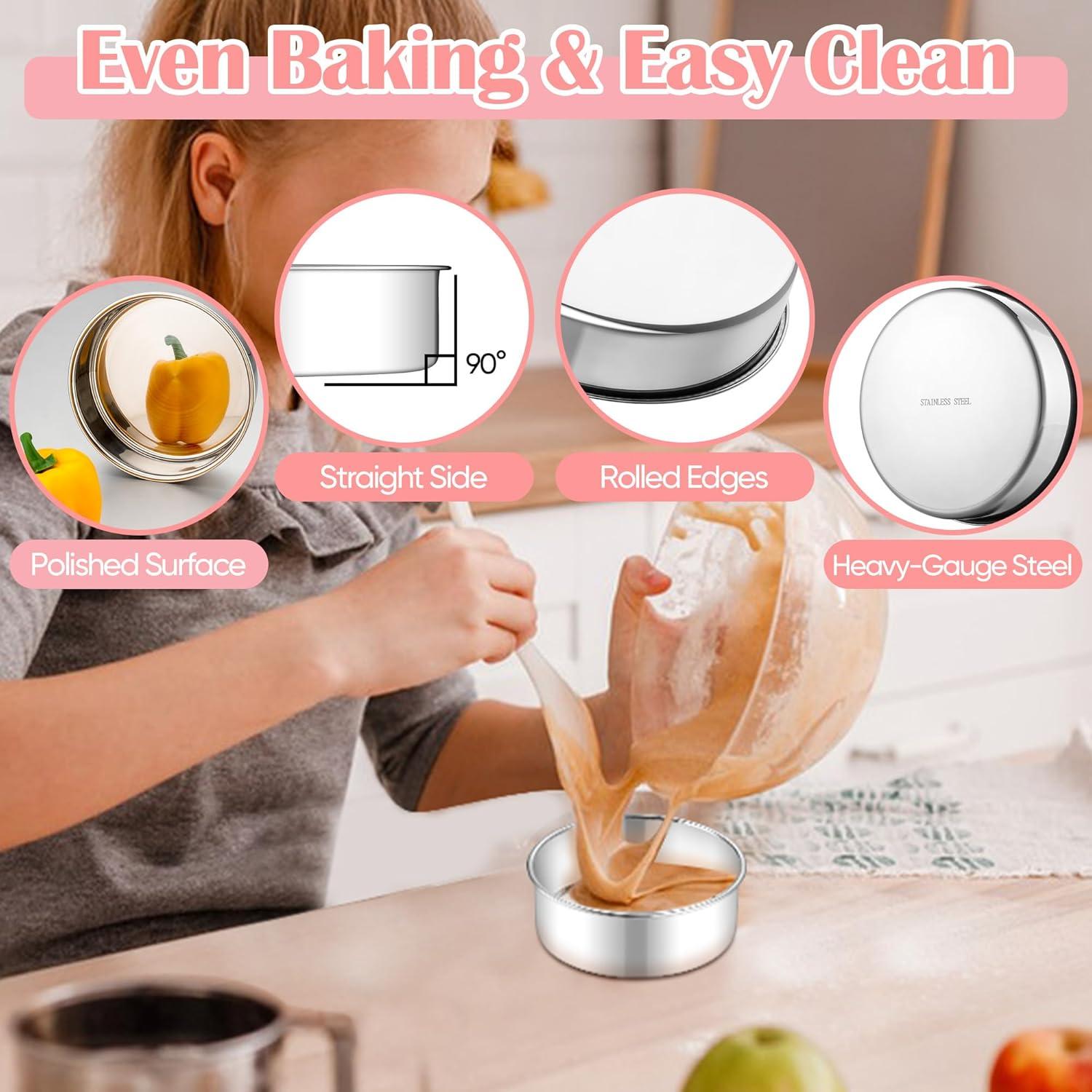 DURABLE & WARP-RESISTANT: Made from heavy-gauge, rust-resistant stainless steel, Our round baking tins are built to last, The thick construction prevents warping even under high temperatures, And the sturdy, fixed-bottom design ensures leak-proof baking over time