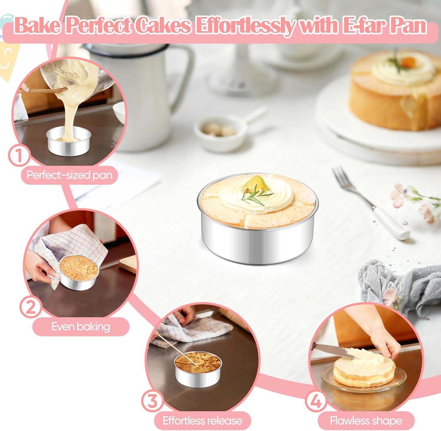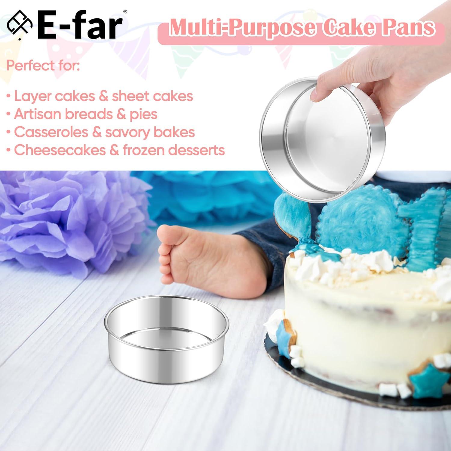 NON-TOXIC & HEALTH-SAFE: Crafted from premium food-grade stainless steel, e-far 11-inch cake pans provide a completely non-toxic alternative to coated or aluminum bakeware, Free from harmful chemicals, they ensure your baked treats are safe and healthy for everyday use