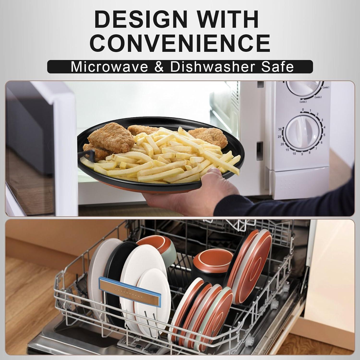 【Dishwasher & Microwave Safe for Effortless Use】The smooth, high-density glazed surface is designed to effectively resist stubborn stains and odors; Enjoy the ultimate convenience of hassle-free cleaning in the dishwasher and safe reheating in the microwave, making every meal and cleanup a breeze