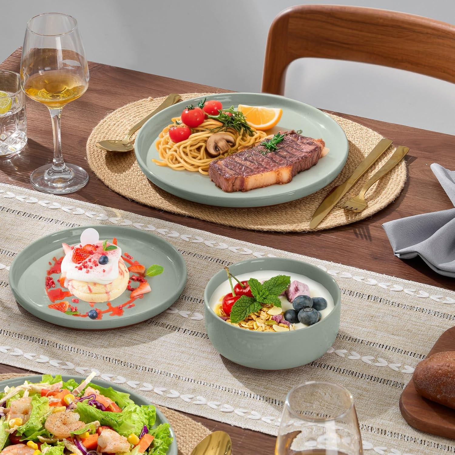 【Healthy & Premium Glazed Stoneware】Crafted from premium natural clay and fired at ultra-high temperatures, lead/cadmium/toxin-free for safe dining; The smooth, dense glaze creates a chip, scratch-resistant and wear-resistant surface, ensuring a safe and long-lasting dining experience for daily use
