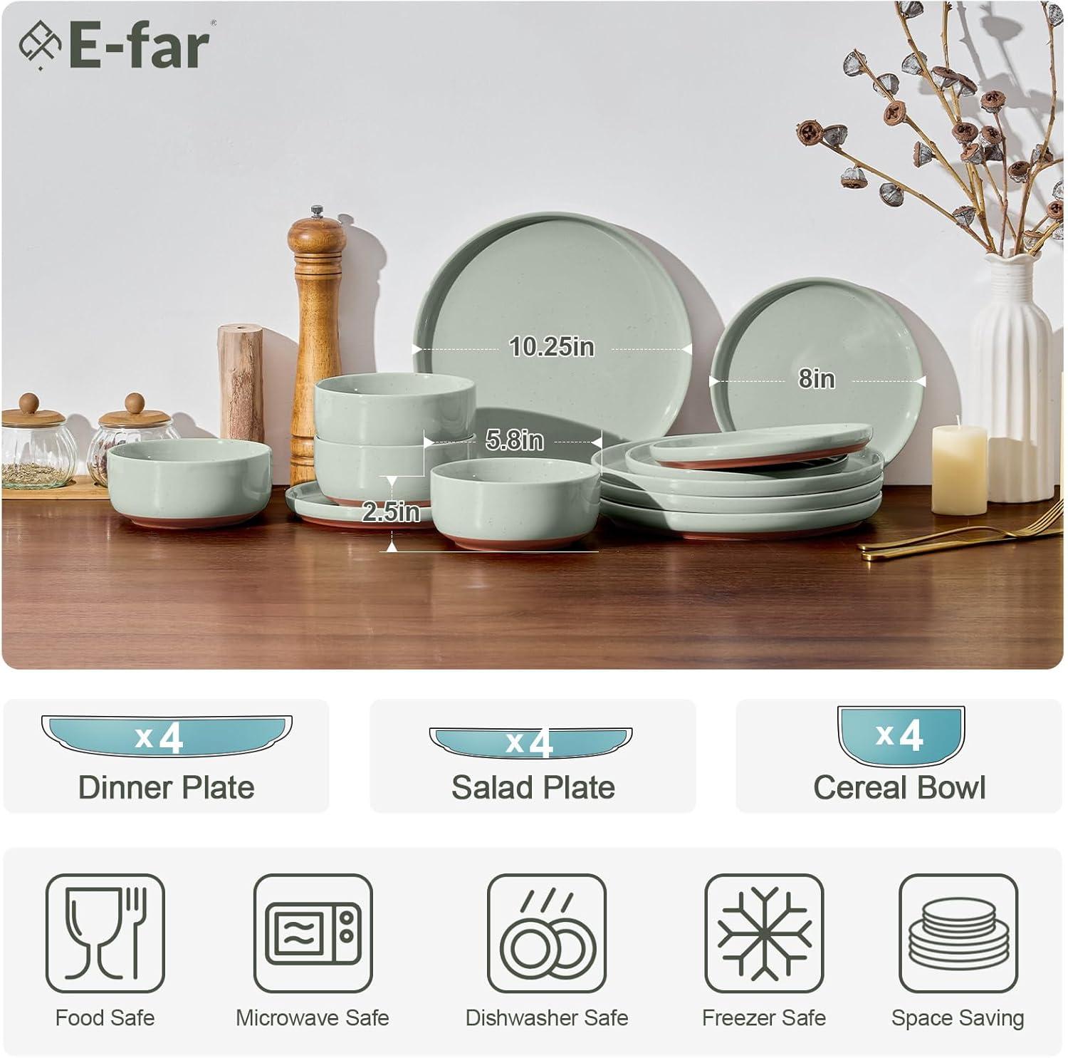 Be the first to review “E-far 12-Piece Stoneware Dinnerware Sets, Plates and Bowls Sets for 4, Ceramic Dishware Dishes Set with Terracotta Base, Chip & Scratch Resistant, Microwave & Dishwasher Safe, Speckled White(Sage Green)”