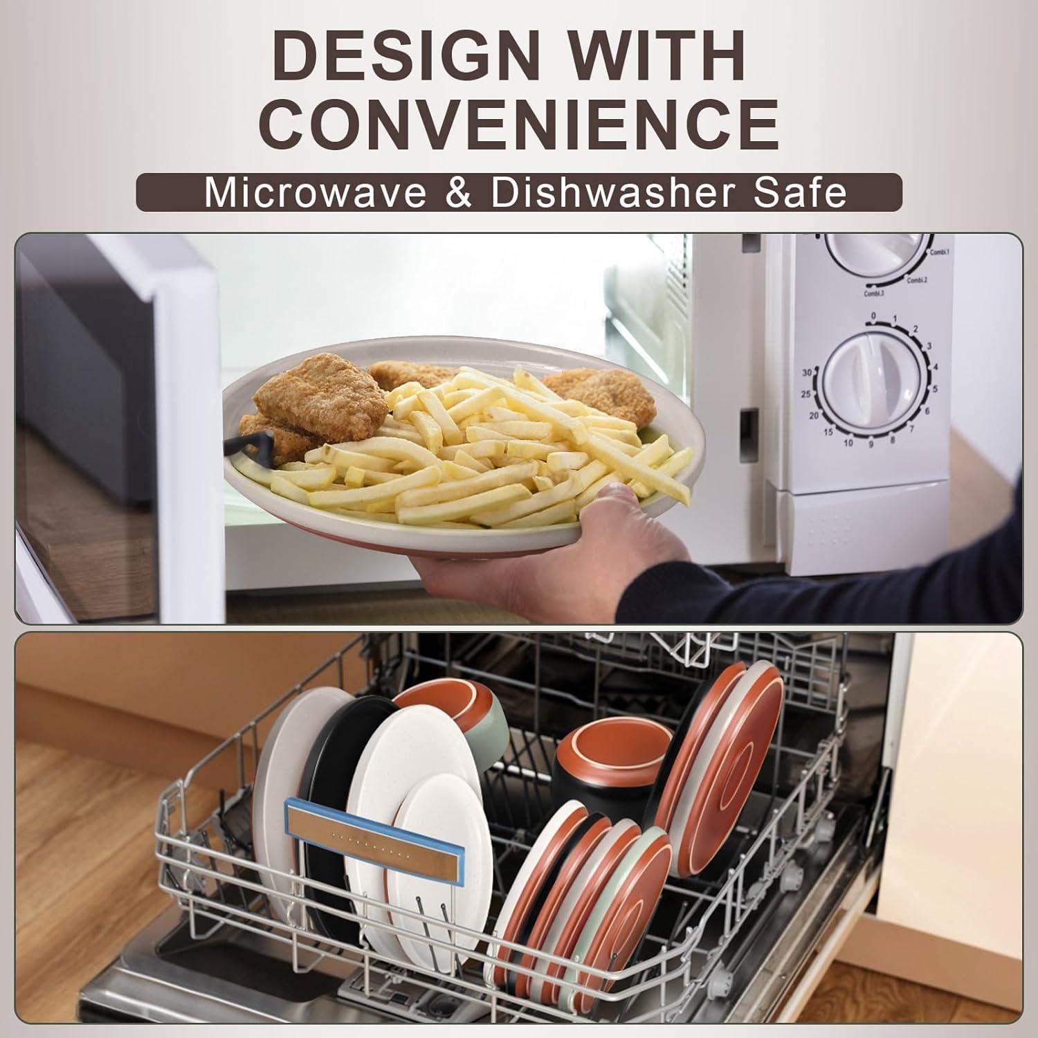 【Dishwasher & Microwave Safe for Effortless Use】The smooth, high-density glazed surface is designed to effectively resist stubborn stains and odors; Enjoy the ultimate convenience of hassle-free cleaning in the dishwasher and safe reheating in the microwave, making every meal and cleanup a breeze