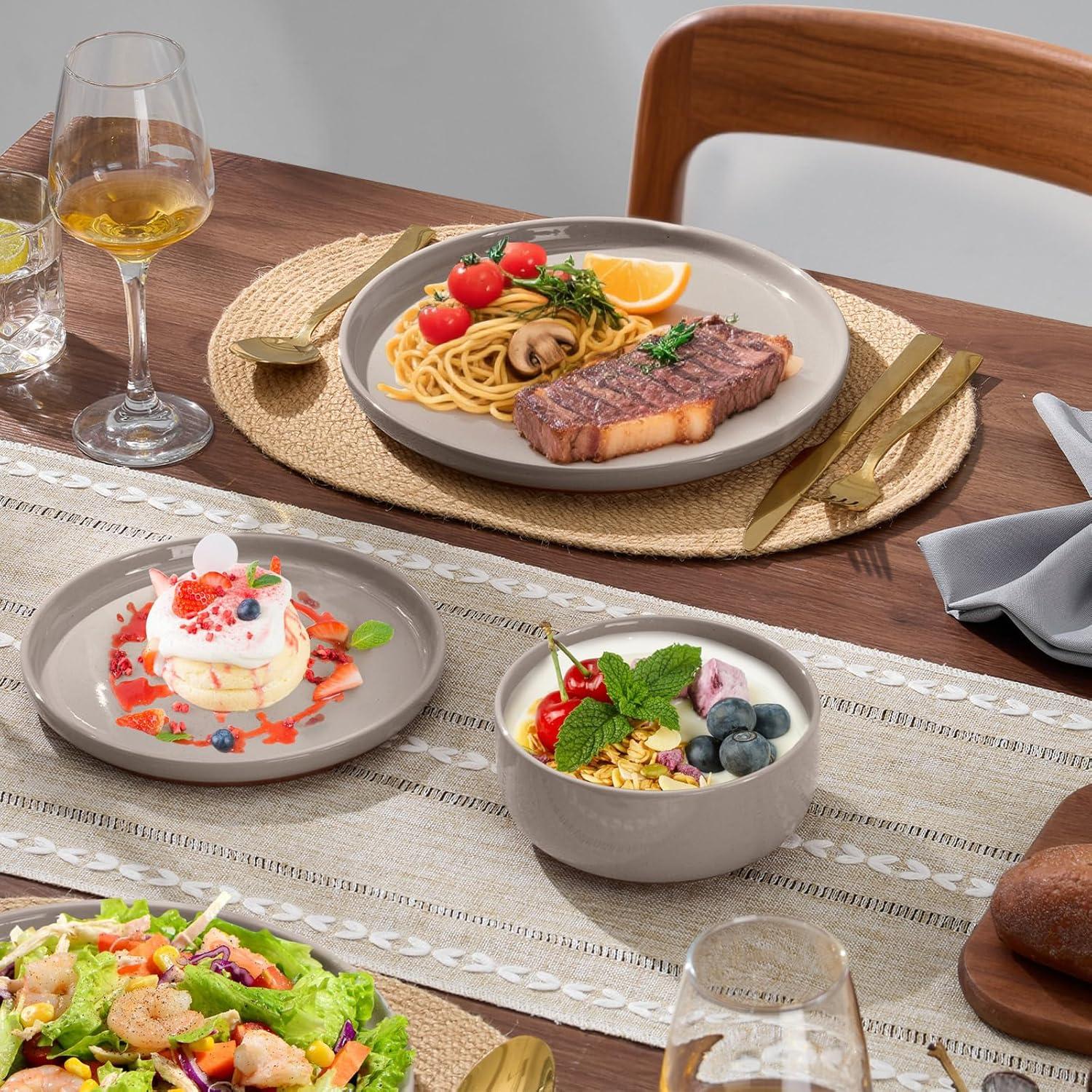 【Complete 12-Piece Set for Modern Dining】This coordinated set includes four 10.25″ dinner plates, four 8″ dessert plates, and four 5.8″ cereal bowls – perfect for serving complete meals for a family of four; It's an ideal and thoughtful gift for housewarmings, weddings, or anyone looking to elevate their daily dining