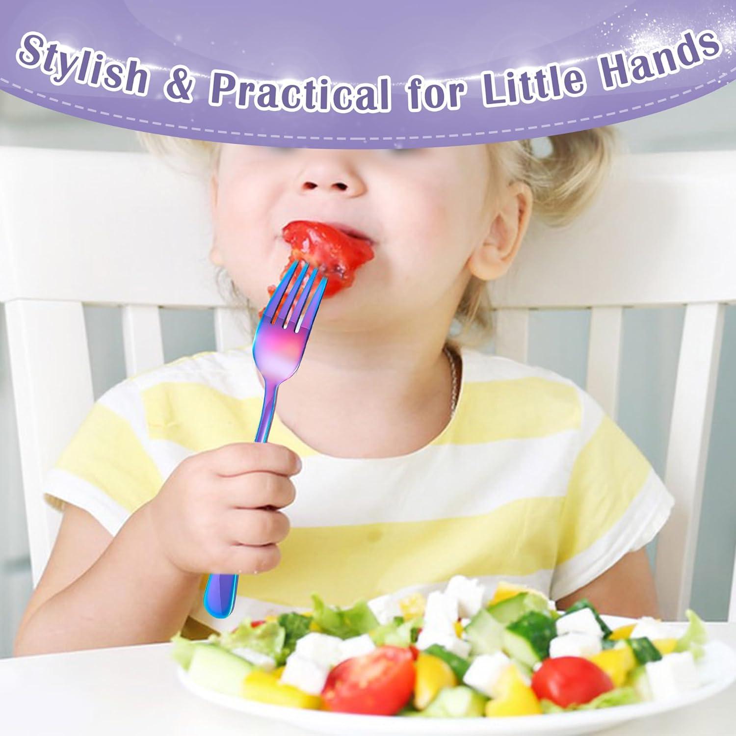 STYLISH & PRACTICAL GIFT: Miniature adult silverware in a small size helps kids feel like grow-up and encourages self-feeding, Ideal training forks and spoons for children dining set, Perfect as gifts for baby showers, birthdays, or holidays