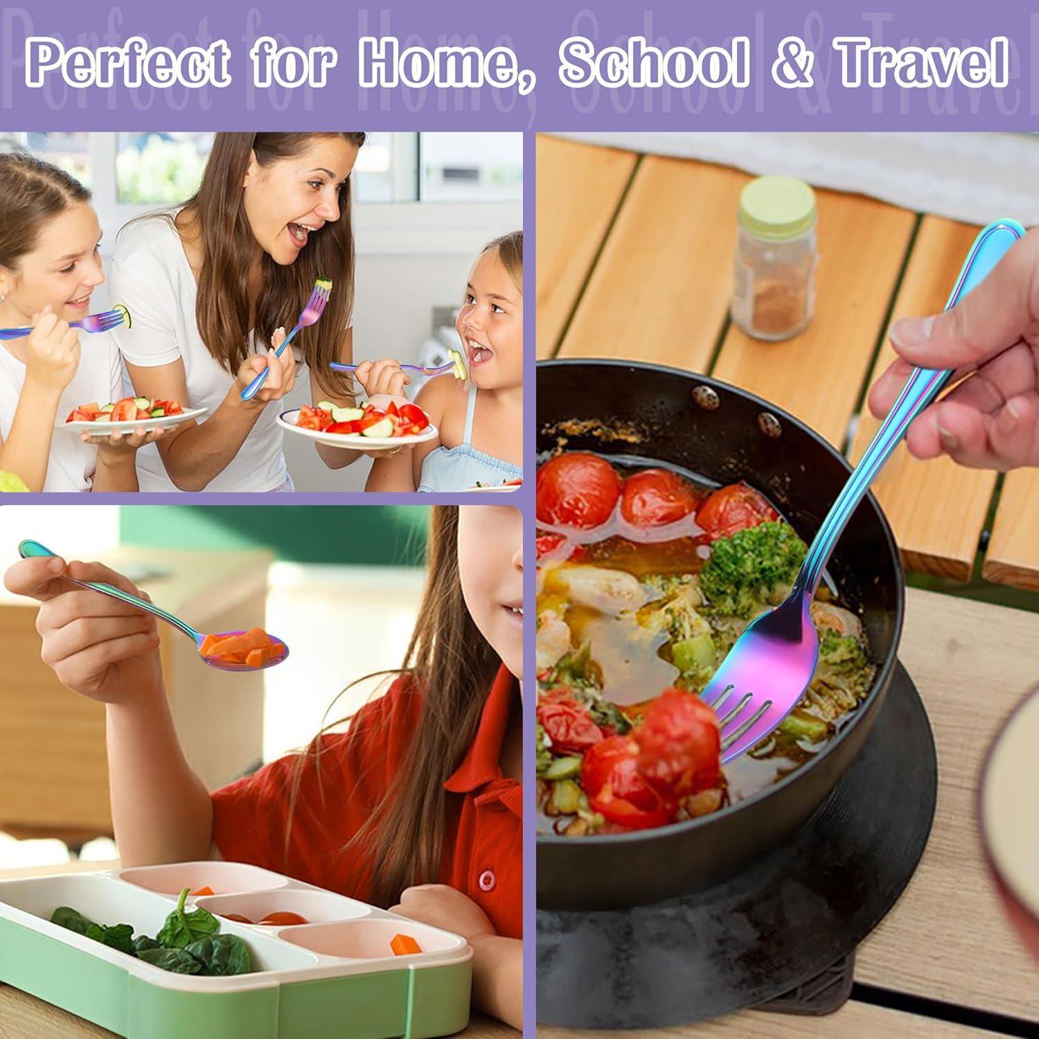VERSATILE 12-PIECE KIDS SILVERWARE: Includes 6 toddler forks and 6 toddler spoons, Providing enough utensils for lunchboxes, home, travel, daycare, Also suitable for whole family for soups, cereals, desserts, salad and snacks