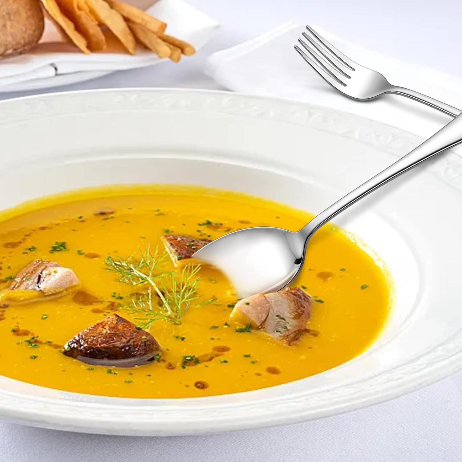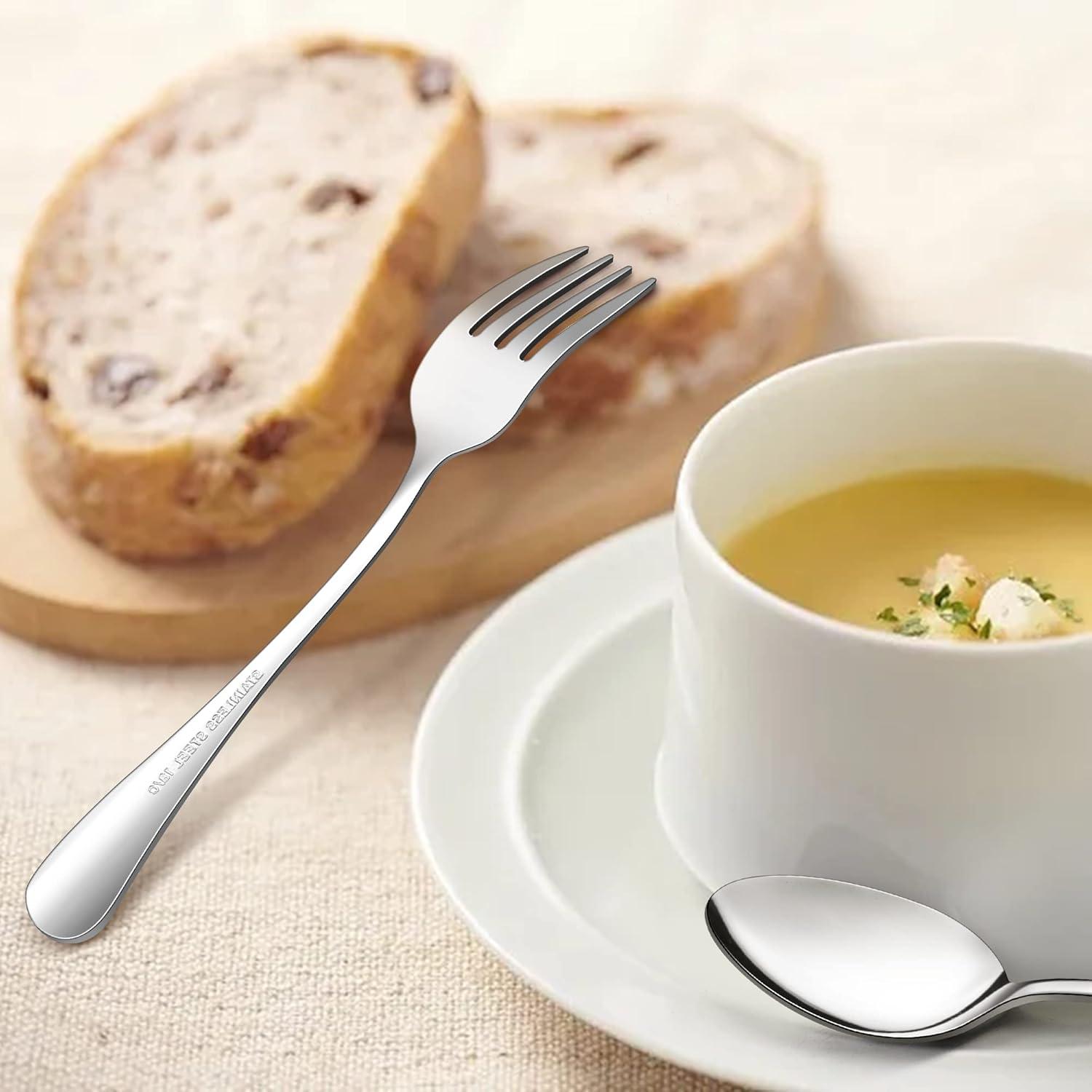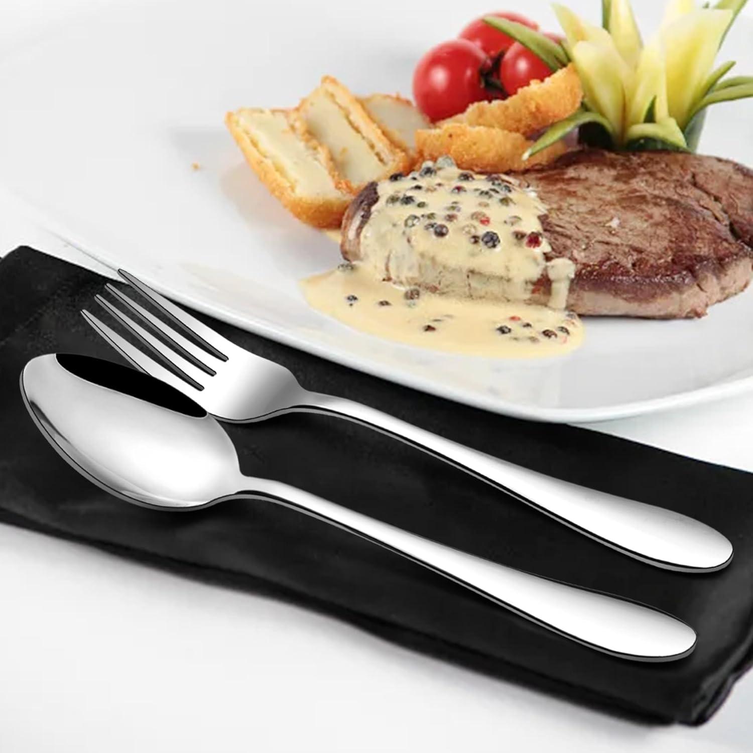 The silver dinner forks and spoons set have ergonomically-designed and round handle, provide a suitable grip, make it feel good in hands, Appropriate weight and suitable size, ensure well balance, Make you to hold and grip the product comfortably