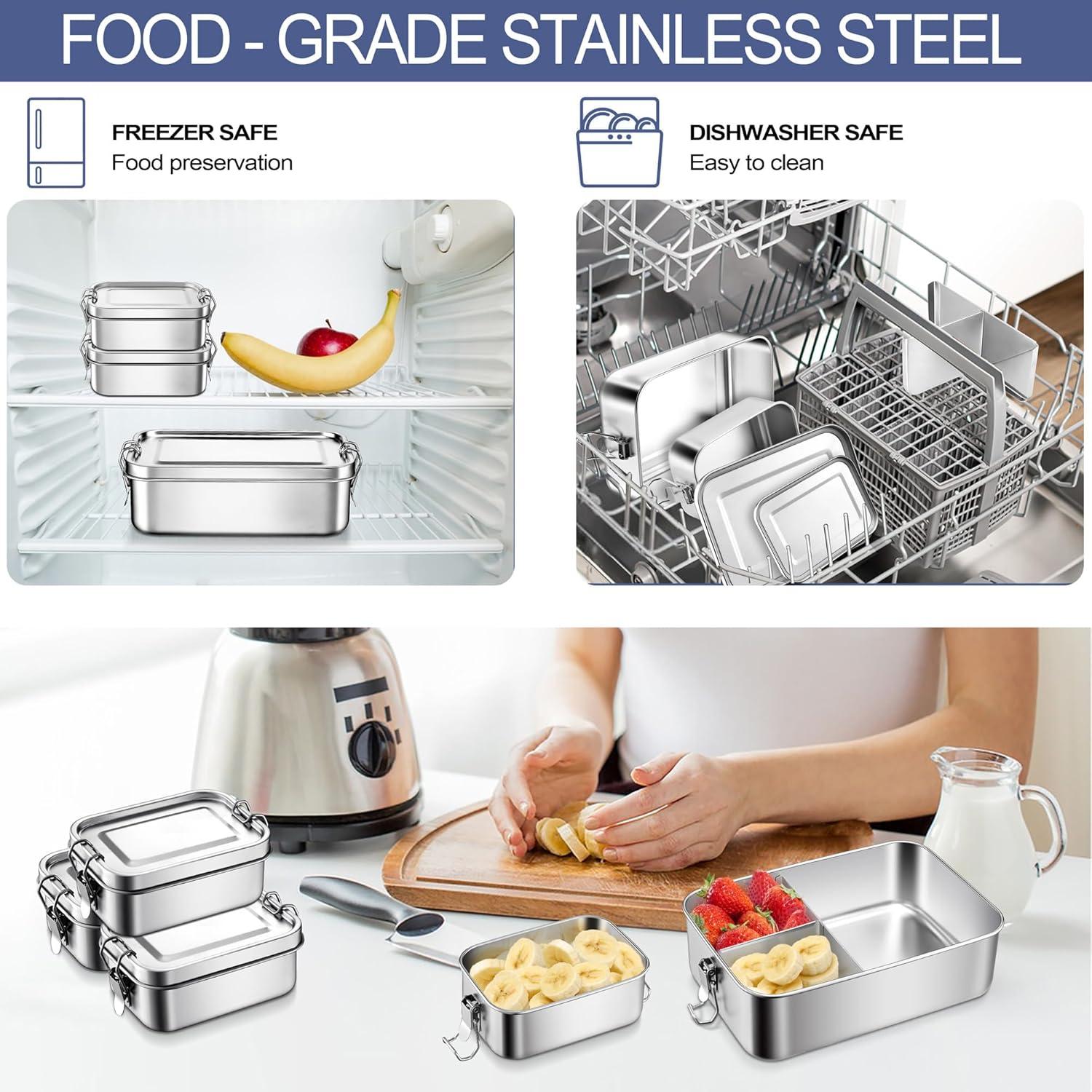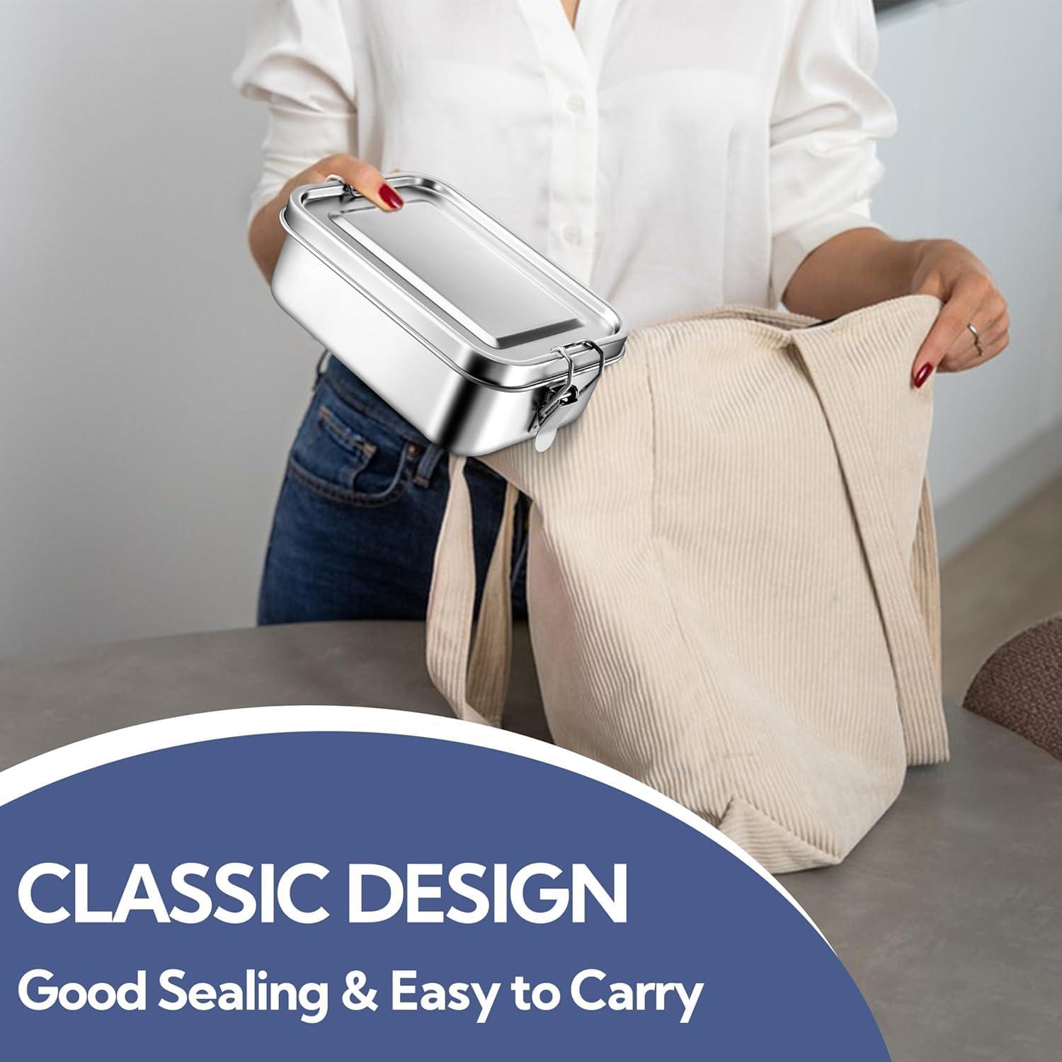 PREMIUM MATERIAL: Using reusable food-grade 18/10 stainless steel material is healthier and more eco-friendly than plastic lunch boxes; Stainless steel container with lid is rust-proof and corrosion-resistant, The appearance classic is very suitable for daily food storage and use