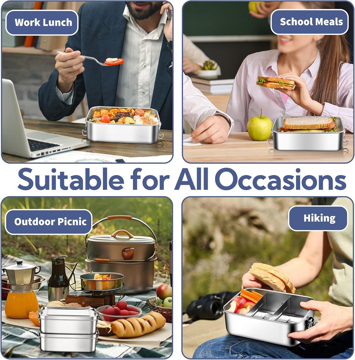 CONVENIENT TO CARRY: Our bento boxes has a compact and portable design, Its size and shape is fit most lunch bags, briefcases and backpacks, Making it a must-have for work and outdoor activities, Allowing you to enjoy delicious meals anytime and anywhere