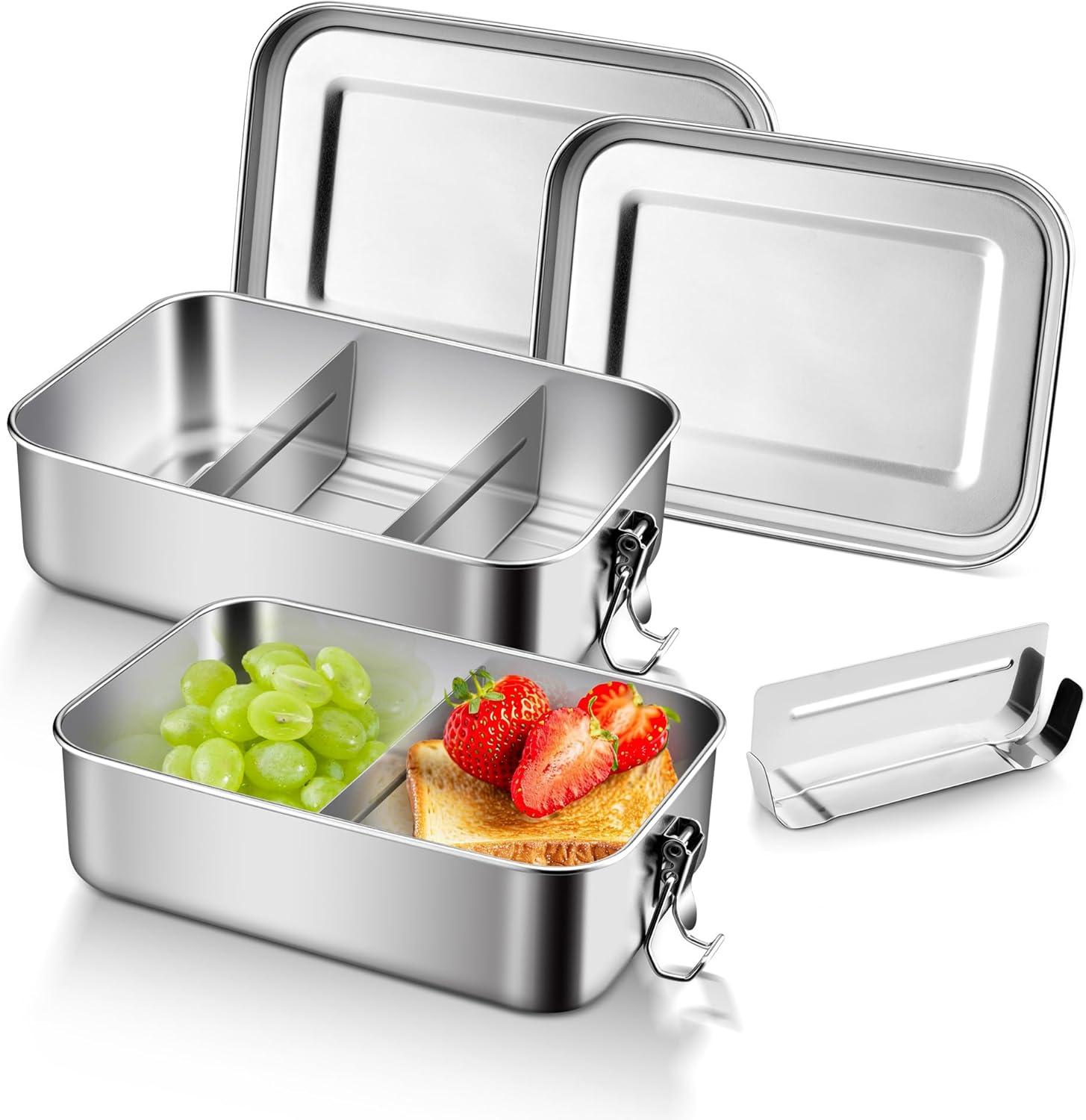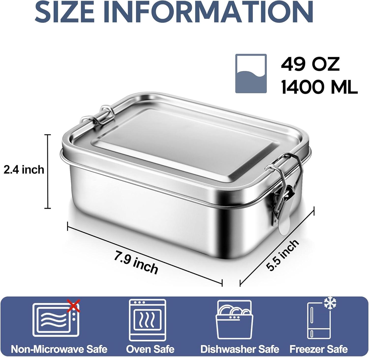 Using reusable food-grade 18/10 stainless steel material is healthier and more eco-friendly than plastic lunch boxes; Stainless steel container with lid is rust-proof and corrosion-resistant.