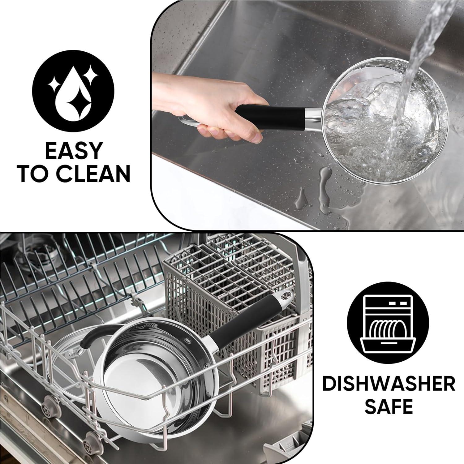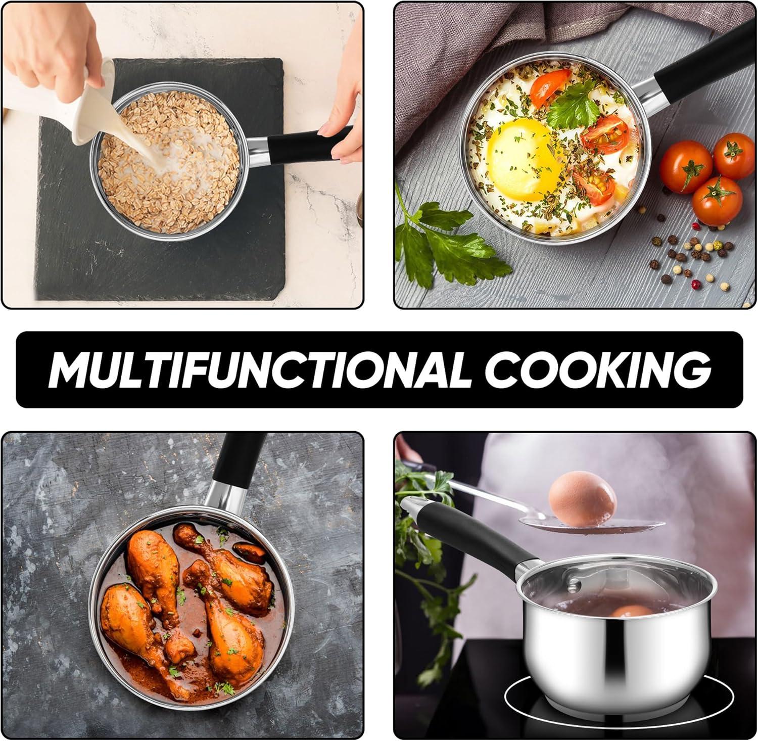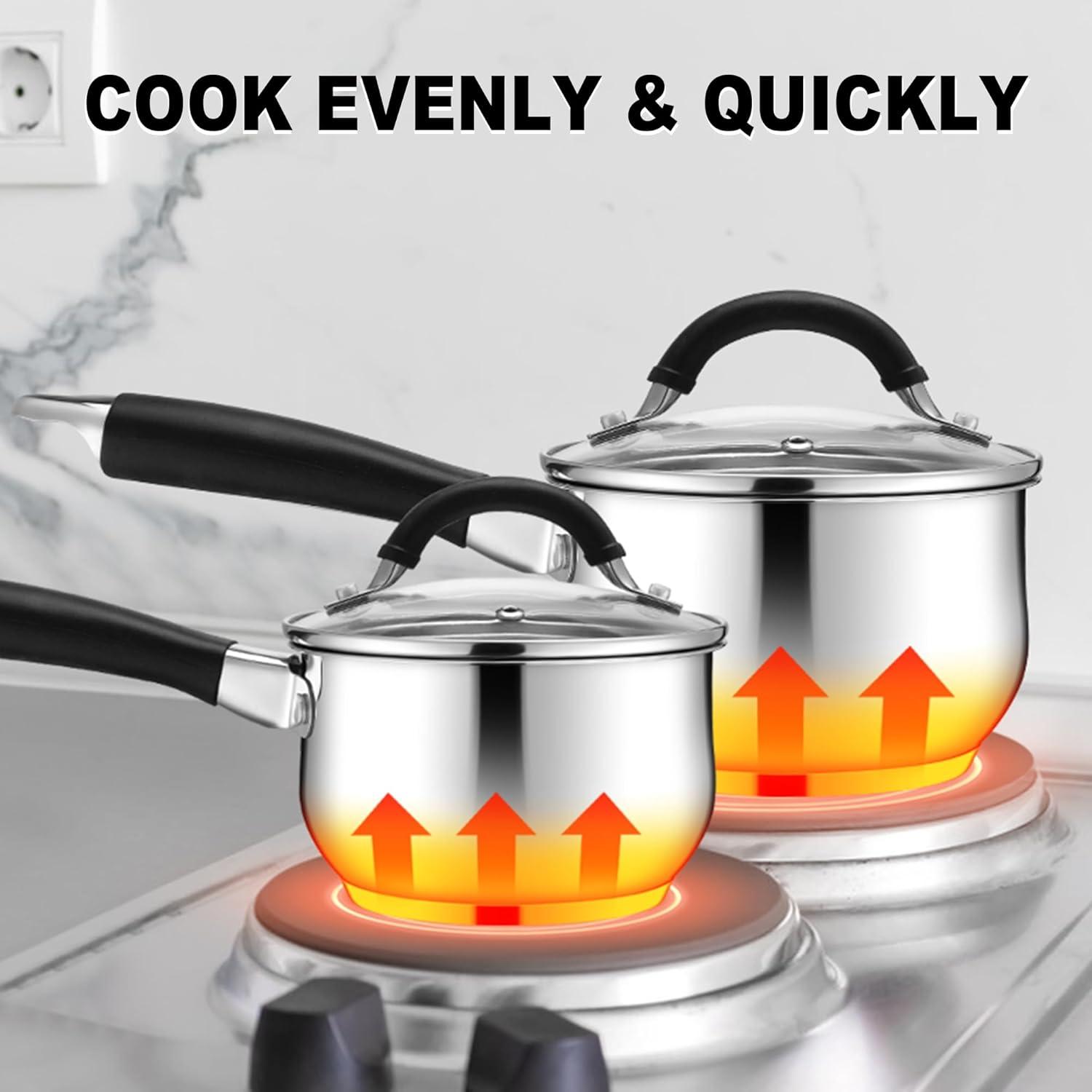 HEALTHY & PREMIUM STAINLESS STEEL: Made of food-grade high-quality stainless steel for long-lasting performance and durability, Saucepan without coating to ensure that non-toxic substances do not fall into your food, Healthy and durable for your daily cooking use