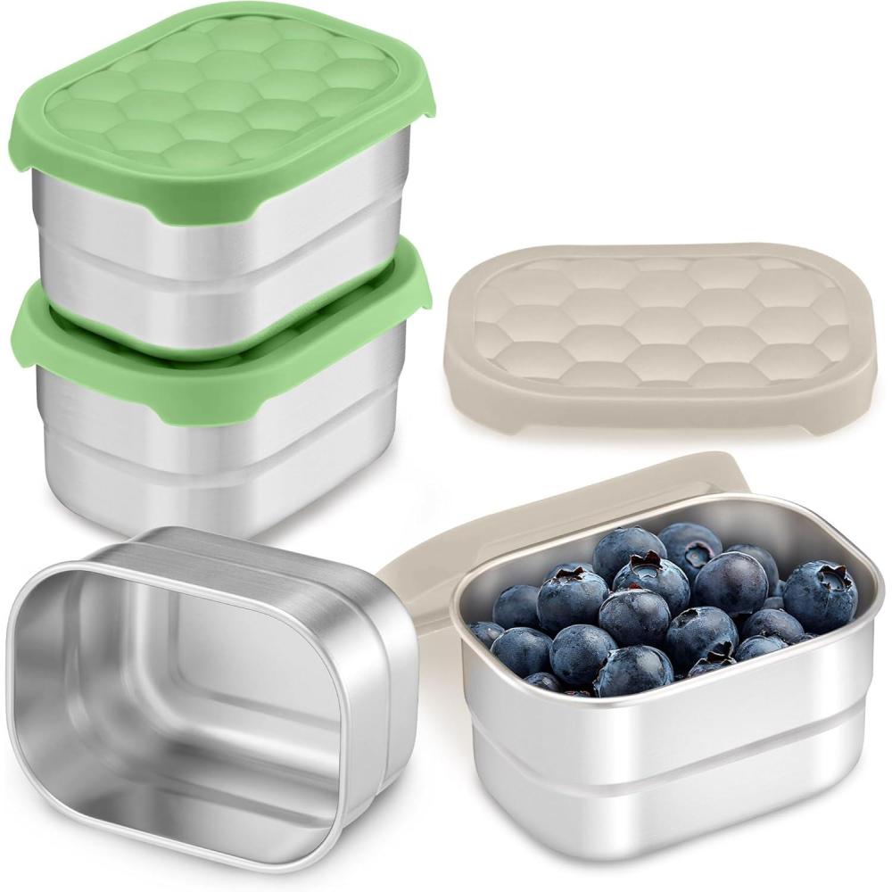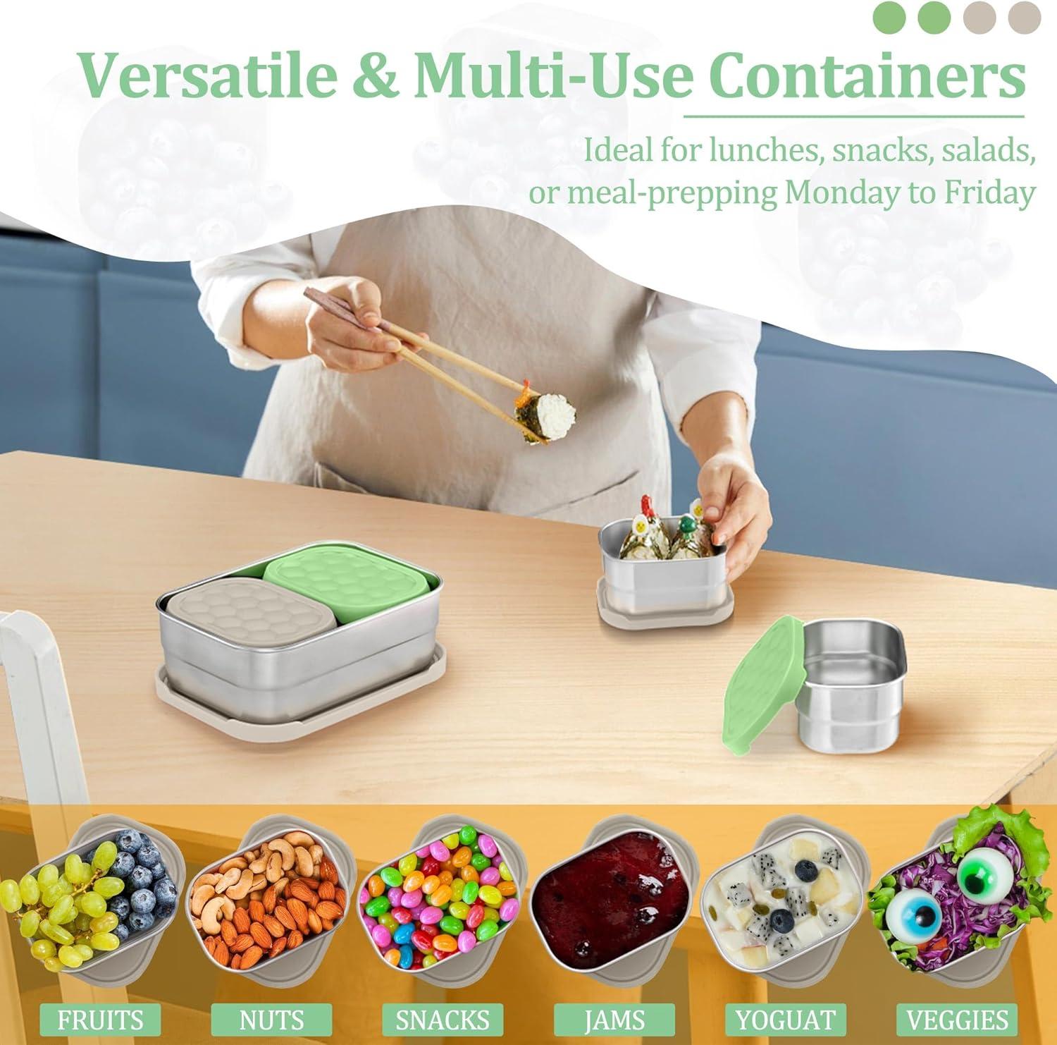 imageEfar 4Pack Stainless Steel Snack Containers for Kids  8oz Reusable Toddler Lunch Box Containers with LeakProof Lids for SchoolDaycareTravel  Stackable Design ampamp Easy Open Oven ampamp Dishwasher SafeGreen  Khaki