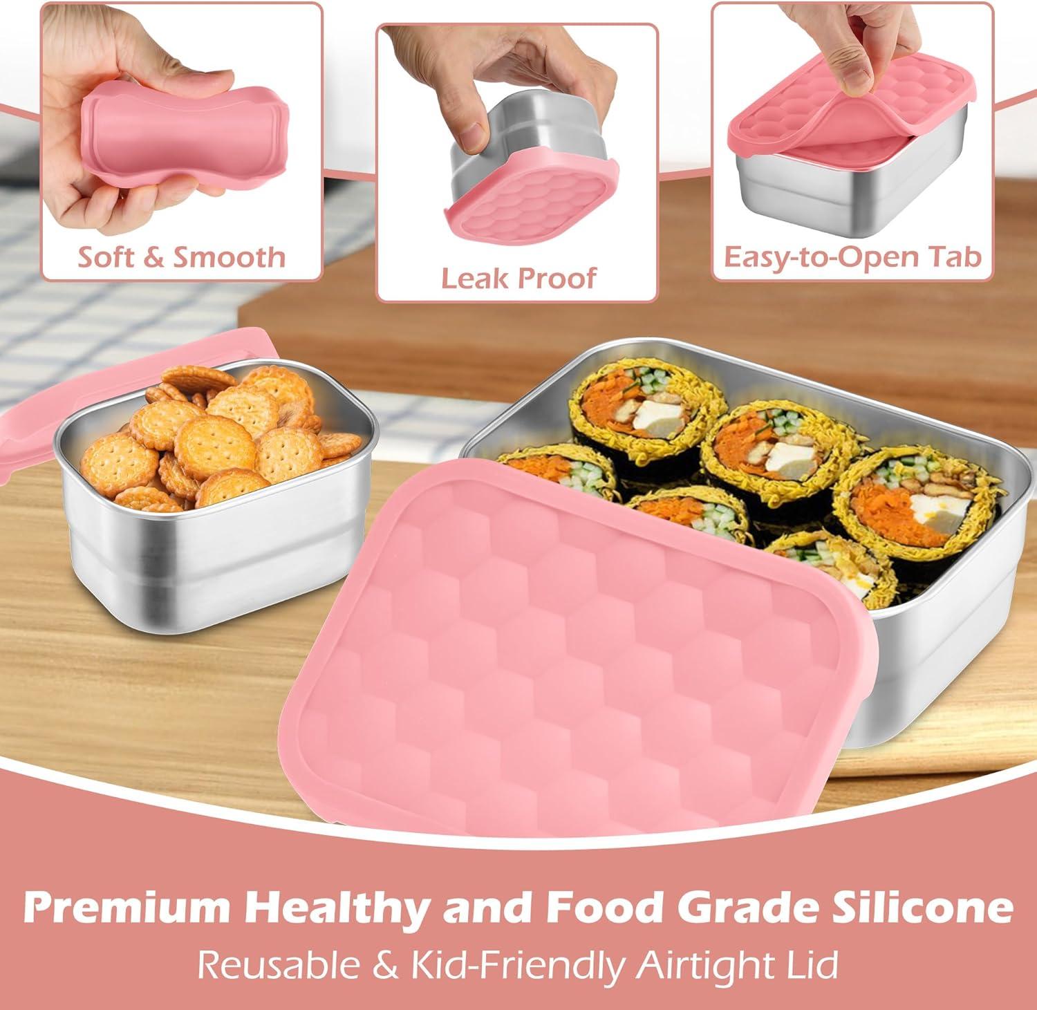SECURE SEAL & KIDS-FRIENDLY: Premium silicone lid is flexible enough for tiny hands, Open and close easily to master self-feeding independence, Yet seals tightly to prevent leaks in backpacks, Ideal for storing fruit, veggies or yogurt while keeping them freshness