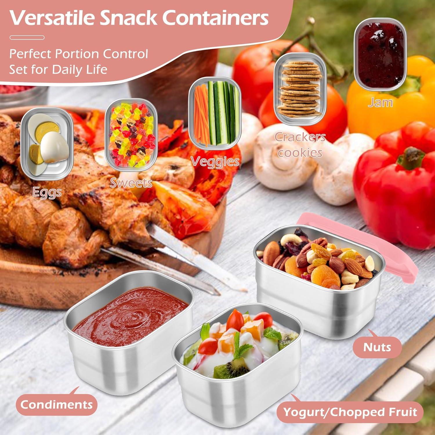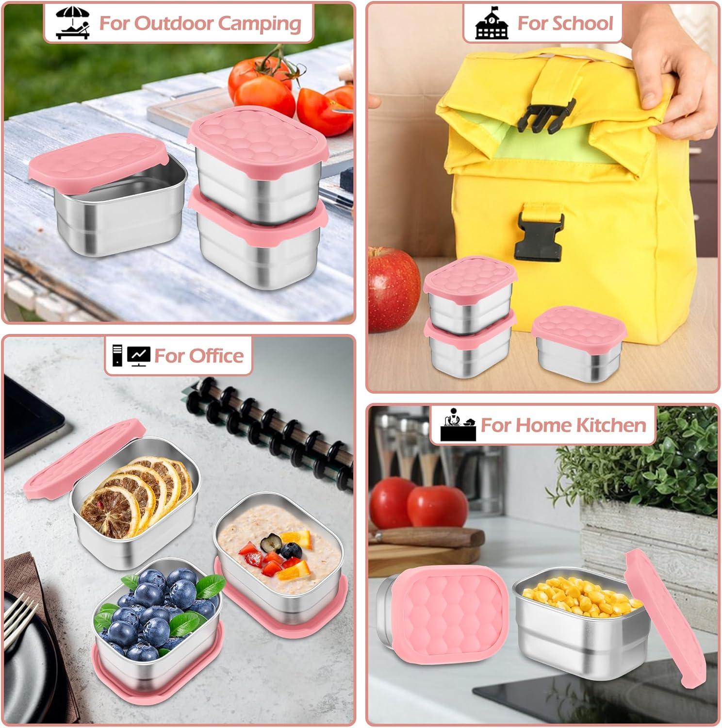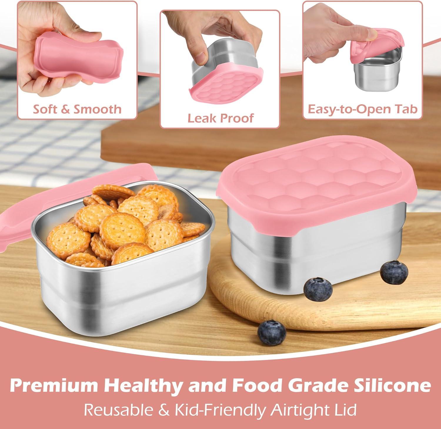 imageEfar 4Pack Stainless Steel Snack Containers for Kids  8oz Reusable Toddler Lunch Box Containers with LeakProof Lids for SchoolDaycareTravel  Stackable Design ampamp Easy Open Oven ampamp Dishwasher SafePink