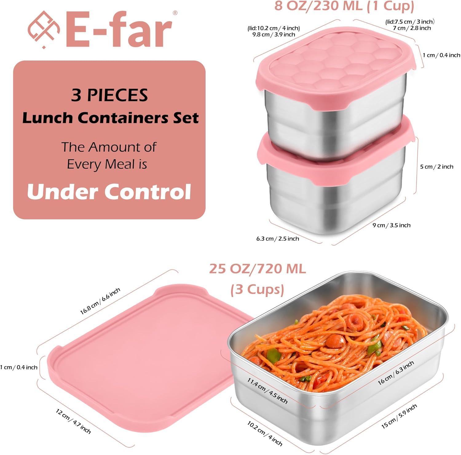 FOOD-SAFE STAINLESS STEEL: E-far kids lunch boxes are made from food-grade stainless steel, Odor-resistant, non-toxic, durable, and safe-won’t shatter or release harmful chemicals into food, Ideal for daily use in kitchens, schools, offices, or travel, Reusable healthier alternative to plastic food containers