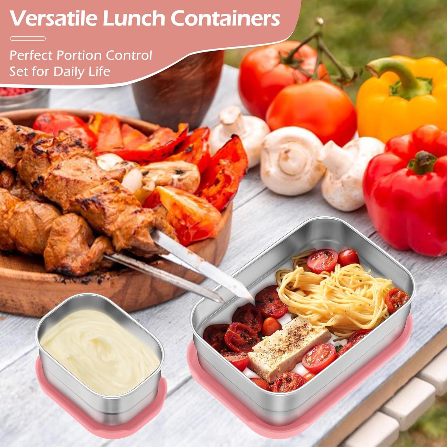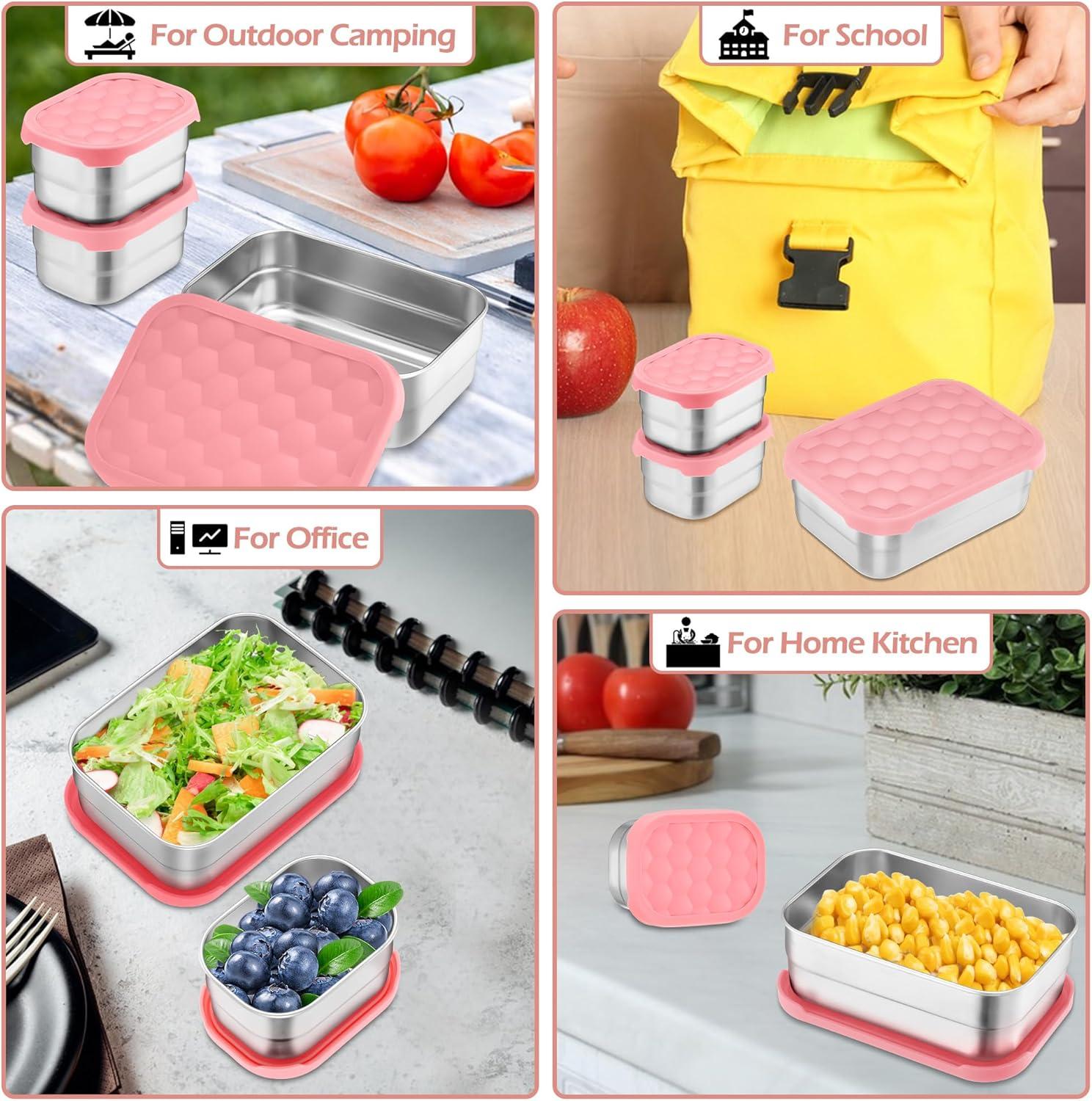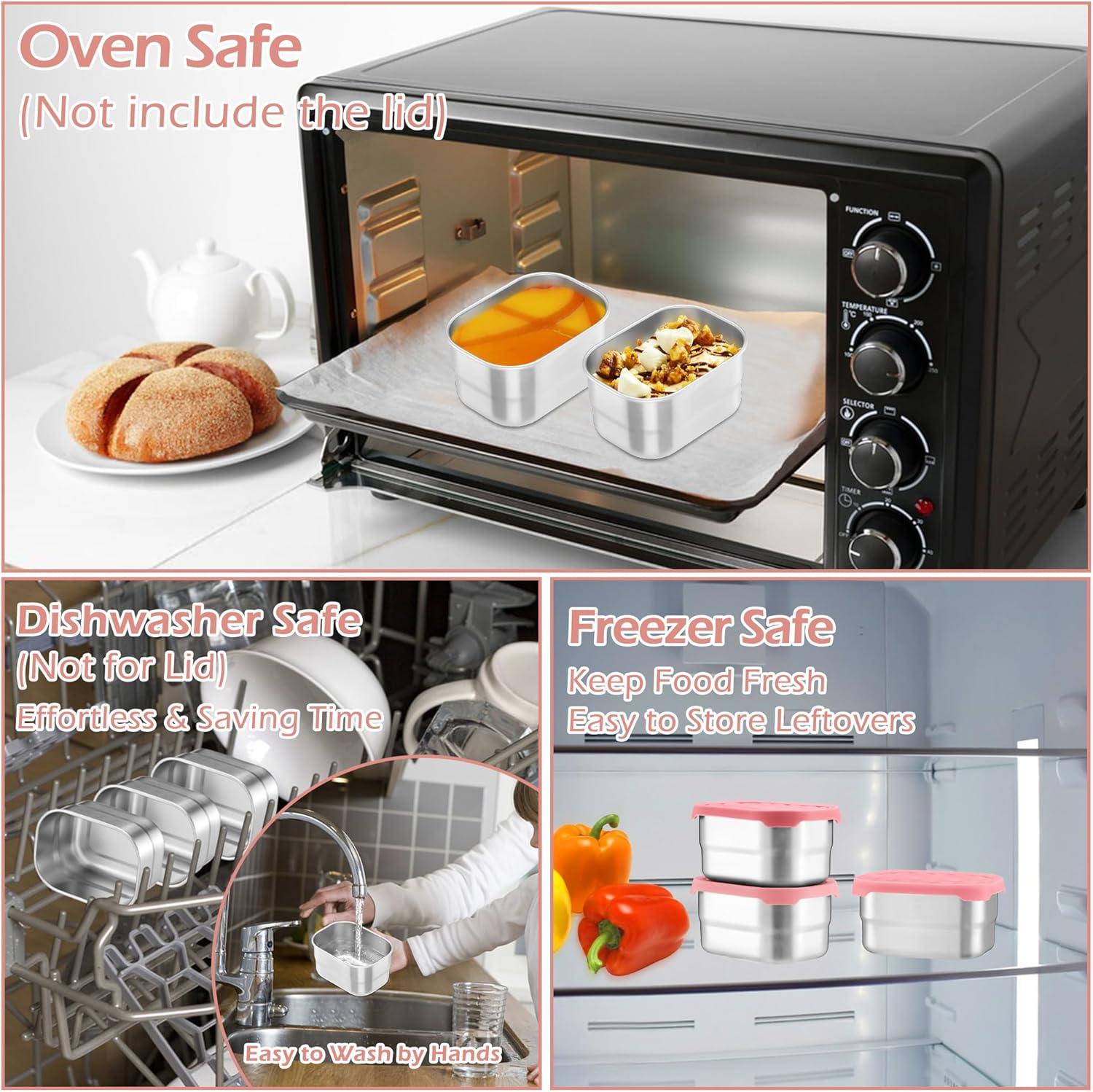 EASY TO CLEAN & OVEN SAFE: Dishwasher-safe stainless steel body and stain-resistant silicone lids simplify cleanup, Stackable design saves kitchen space, Oven-safe containers (lid excluded) and freezer-safe durability support various meal prep needs