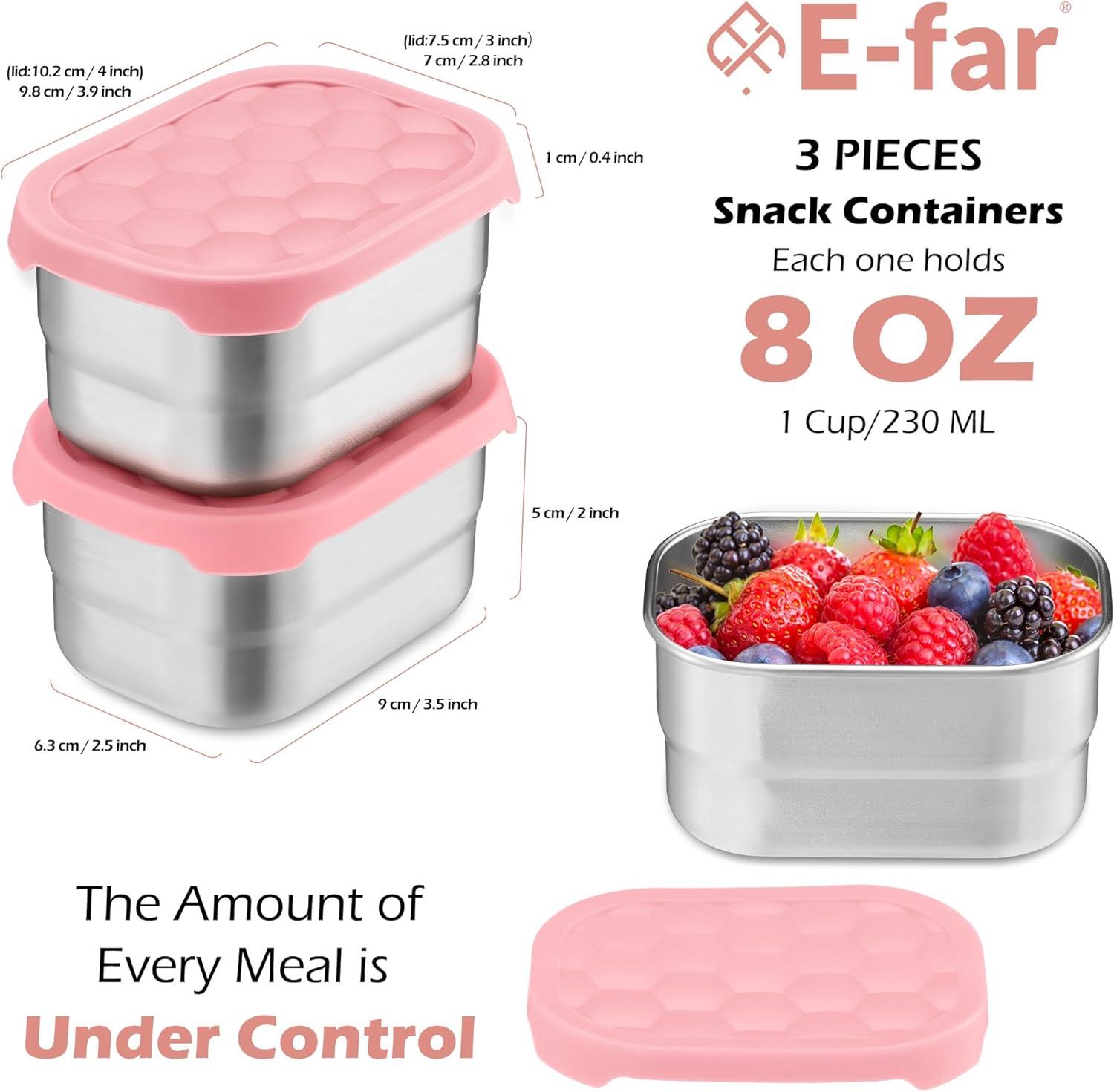 Be the first to review “E-far 4-Pack Stainless Steel Snack Containers for Kids | 8oz Reusable Toddler Lunch Box Containers with Leak-Proof Lids for School/Daycare/Travel | Stackable Design & Easy Open, Oven & Dishwasher Safe(Pink)”