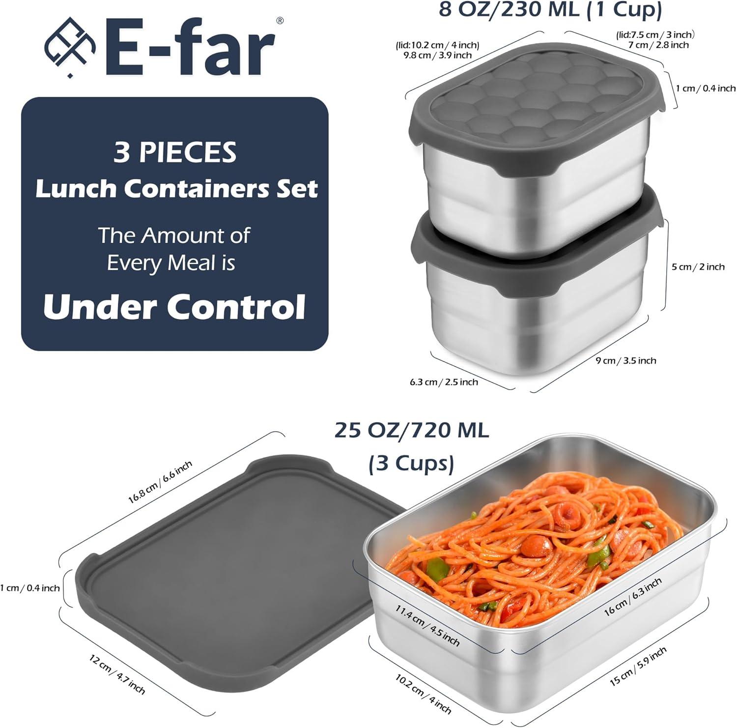 FOOD-SAFE STAINLESS STEEL: E-far kids lunch boxes are made from food-grade stainless steel, Odor-resistant, non-toxic, durable, and safe-won’t shatter or release harmful chemicals into food, Ideal for daily use in kitchens, schools, offices, or travel, Reusable healthier alternative to plastic food containers
