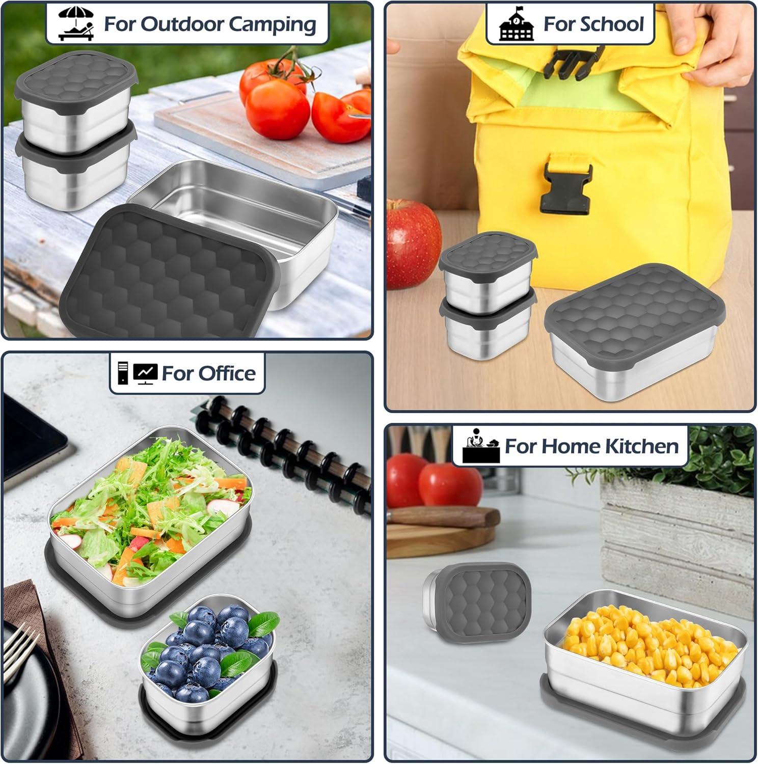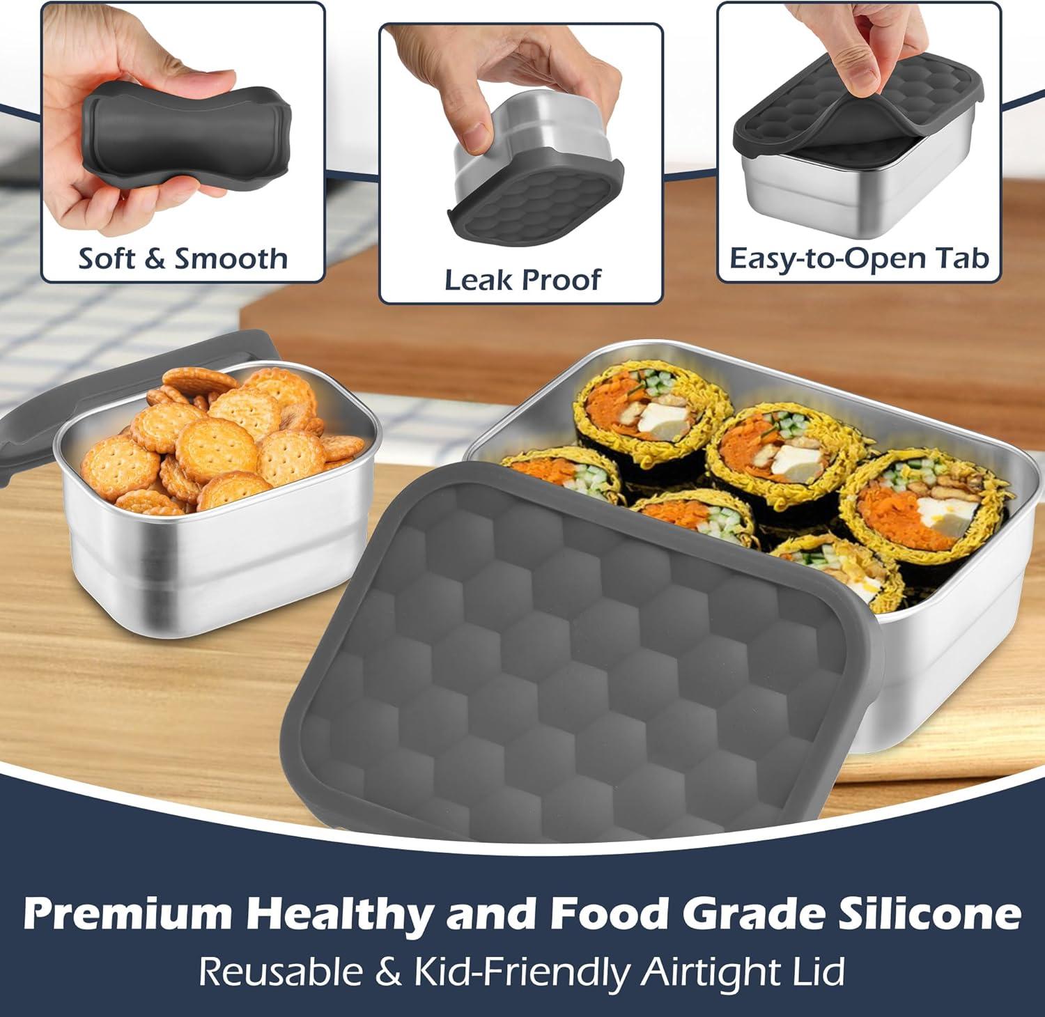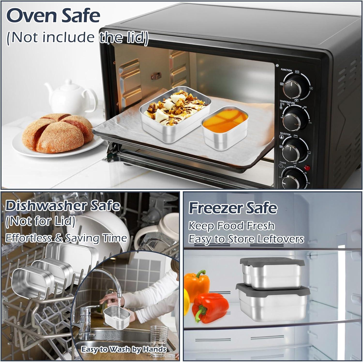 EASY TO CLEAN & OVEN SAFE: Dishwasher-safe stainless steel body and stain-resistant silicone lids simplify cleanup, Stackable design saves kitchen space, Oven-safe containers (lid excluded) and freezer-safe durability support various meal prep needs
