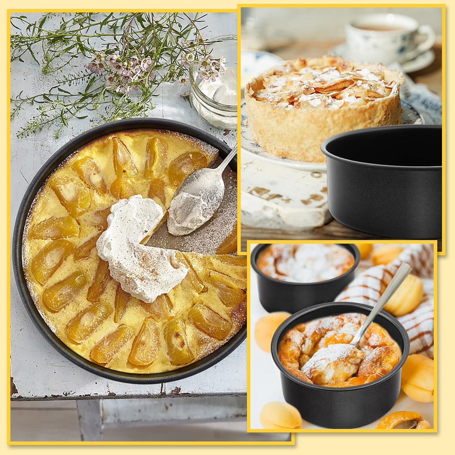 3 CAKE TINS: 3 Pieces round baking pans measures 5” x 2”, Can replace easily and give you more flexible to make various tiers cakes, deep dish style pizzas, cinnamon rolls or brownies for birthday/wedding/Thanksgiving, Great gifts for friends and family