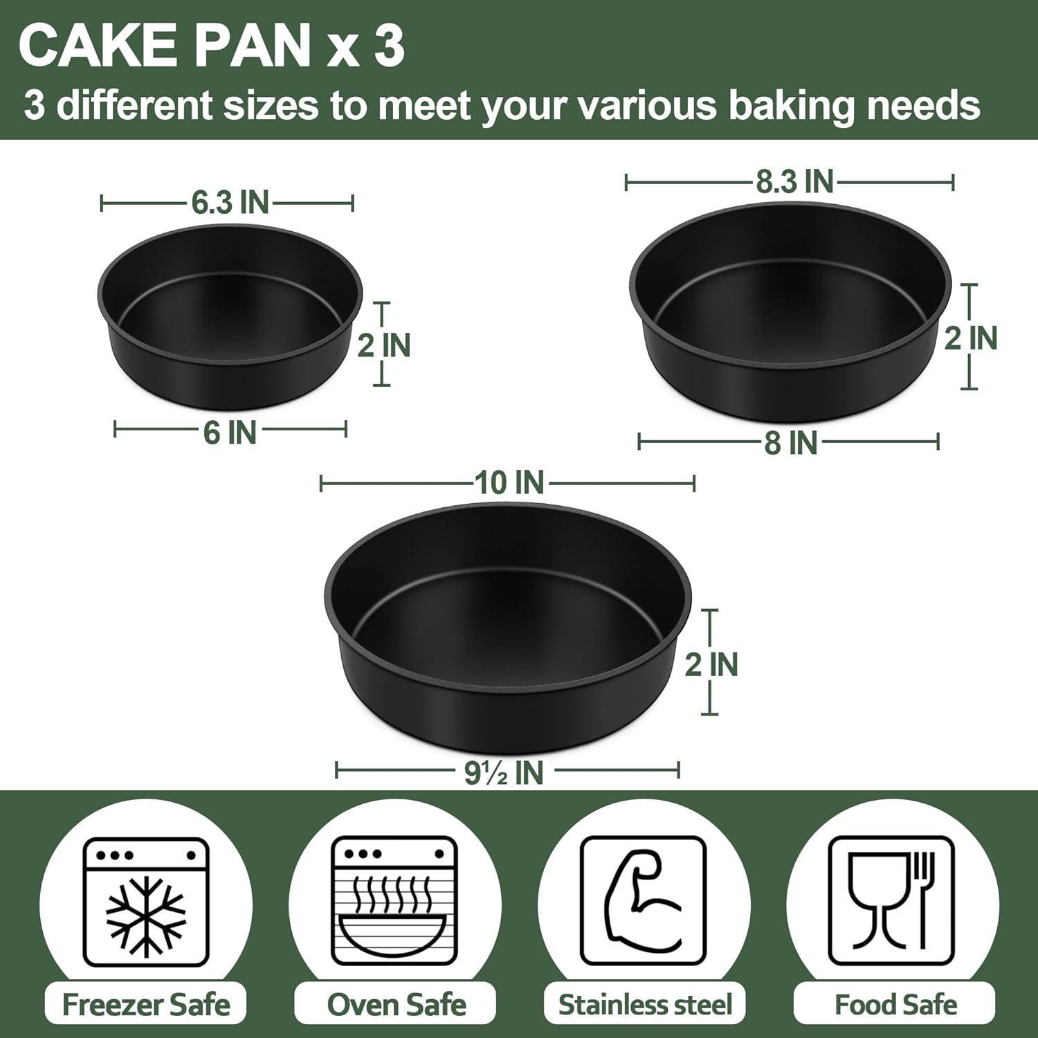 HEALTHY MATERIAL: Made of food-grade stainless steel core and toxic free non-stick coating, No worry about harmful substances into food at high heat, Healthier than aluminum cake pans, High hardness stainless steel anti-rust and anti-deformation, Sturdy and durable for daily use