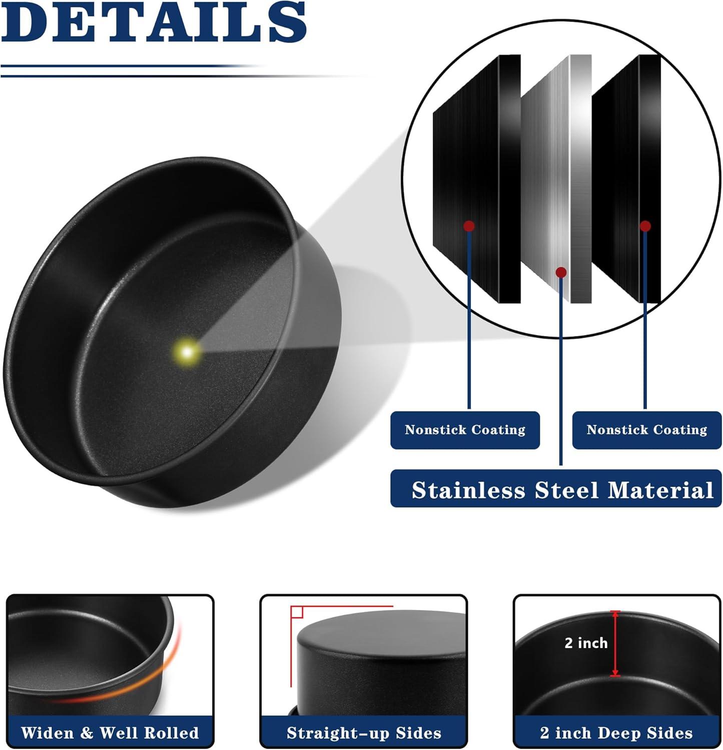 EXQUISITE CRAFT: Thick gauge metal heat resistant safely in ovens up to 450°F and with flat bottom keeps the cake evenly heated at high temperature, 2-Inch high give cake more room to rise and avoid batter overflow, ideal for layer cakes, Save the hassle to cutting or trimming