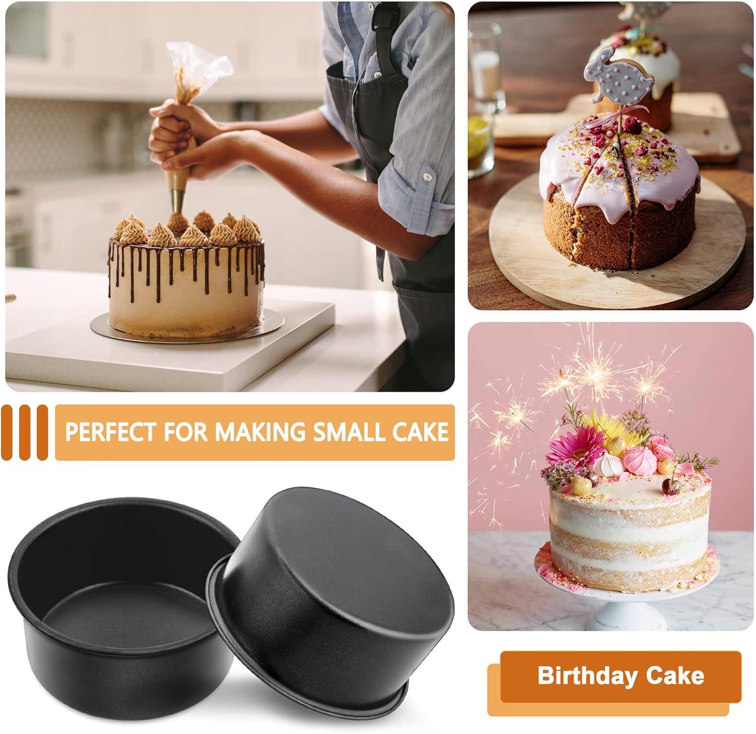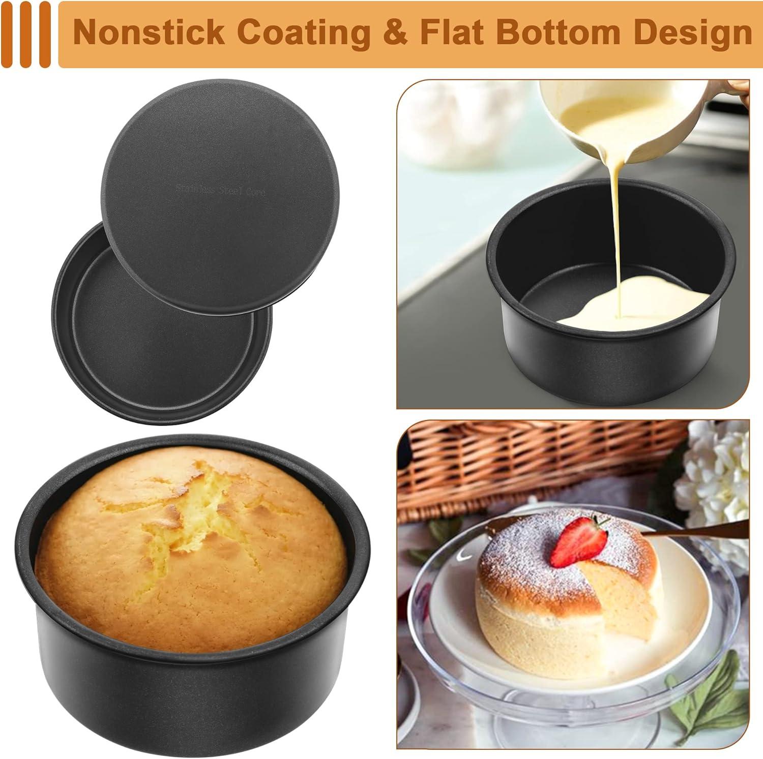 EXQUISITE CRAFT: 2 inch deep straight side design for better layer performance, save the hassle to cutting or trimming; Thick gauge metal heat resistant up to 450°F and with flat bottom keeps the cake evenly heated at high temperature, Great choice when baking cakes at home