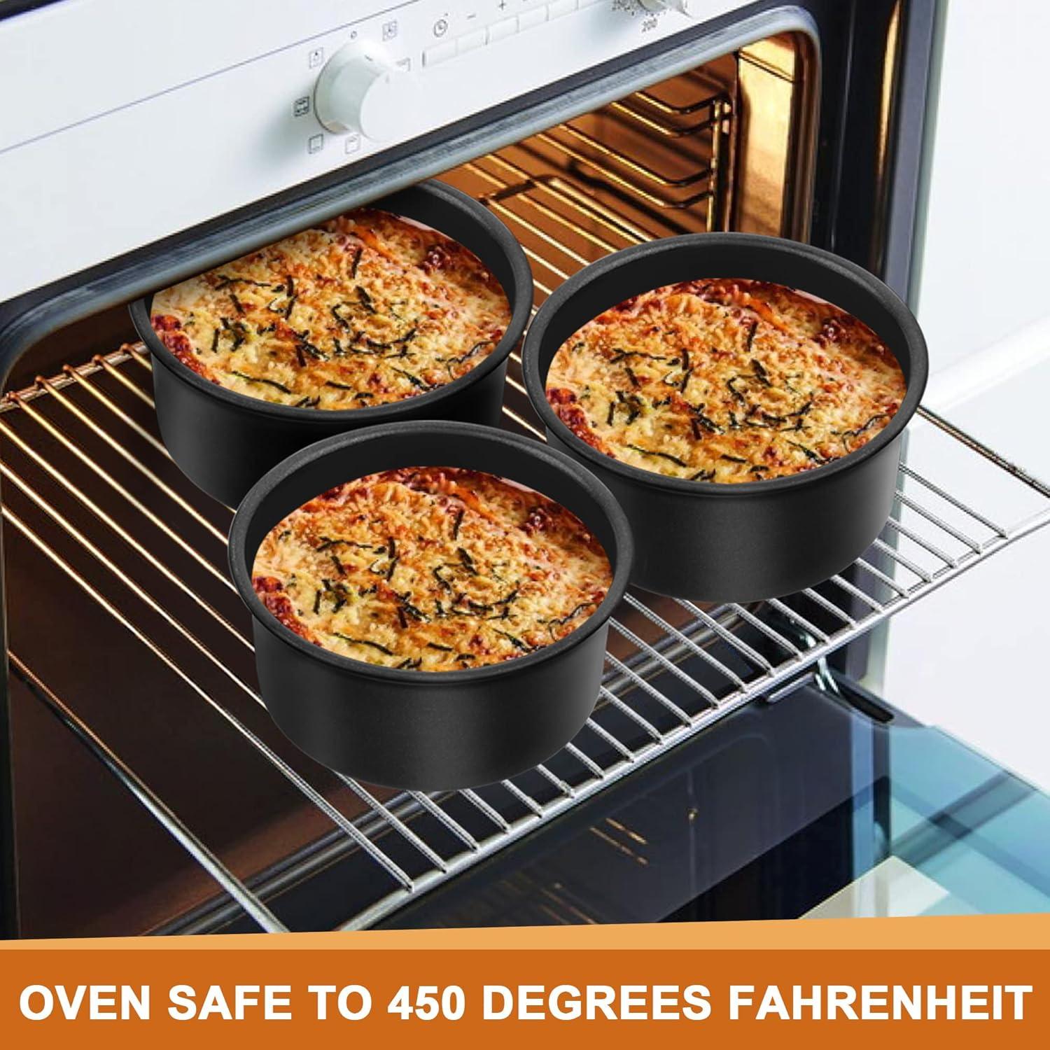WIDE USE: The round cake pan is a tool commonly used in the home, Which can meet the daily needs of making pastries at home; Make various types of cakes for friends at birthday parties and other parties; It can also serving as container for foods; Suitable for oven/air fryer/pressure cooker, etc