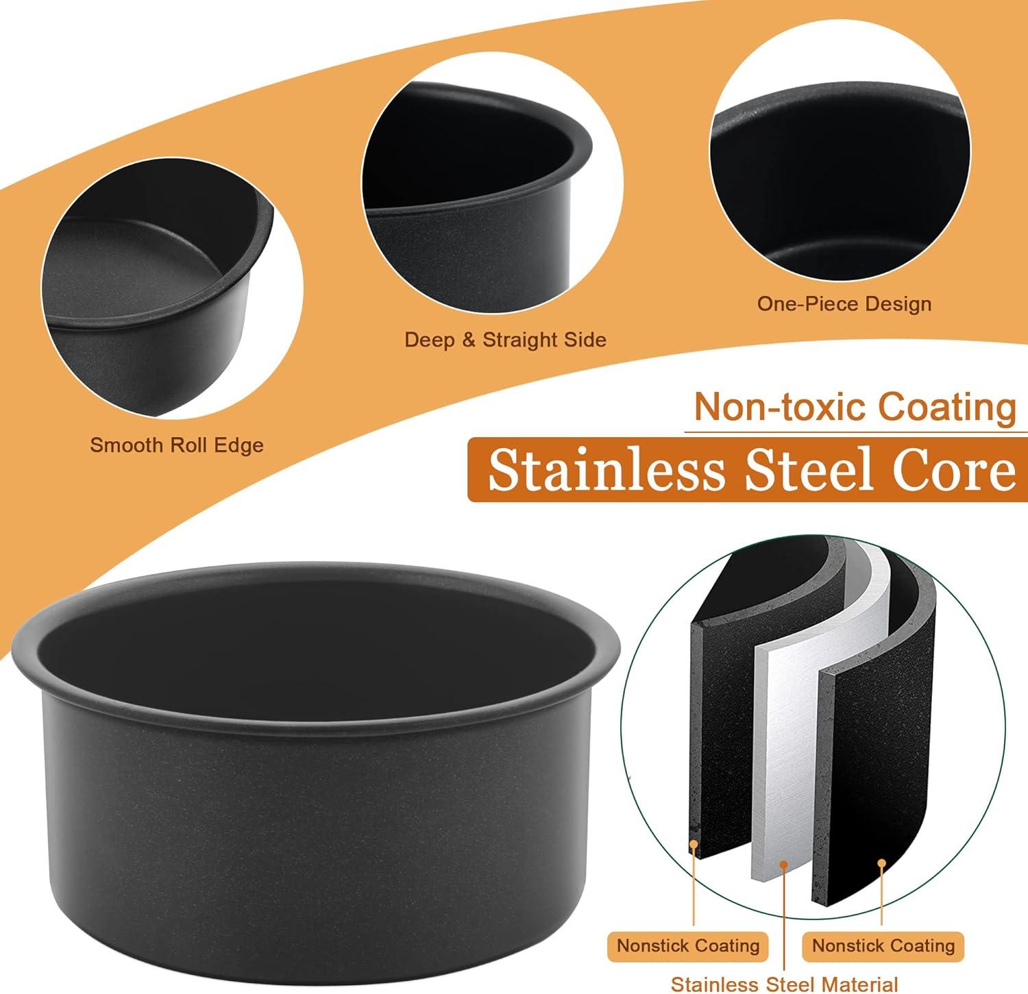 HEALTHY MATERIAL: Made of food-grade stainless steel core and toxic free non-stick coating, No worry about harmful substances into food at high heat, Healthier than aluminum cake pans, High hardness stainless steel anti-rust and anti-deformation, Sturdy and durable for daily use