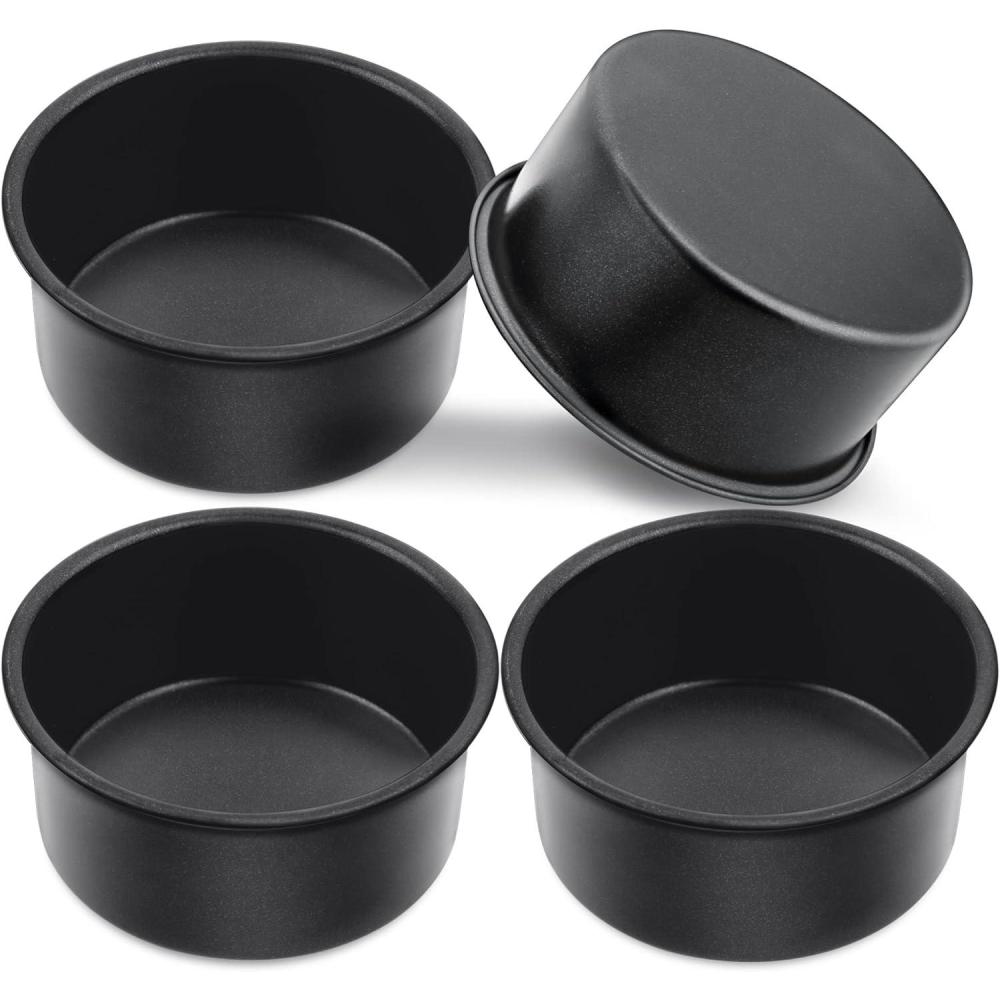 4PCS CAKE PANS: 4 cake pans of the same size, 8 “x2”, Flexible for making different cakes such as birthday cake, layered cake, cheesecake and deep dish pizza, Also for DIY desserts and food, Great gifts for friends and family