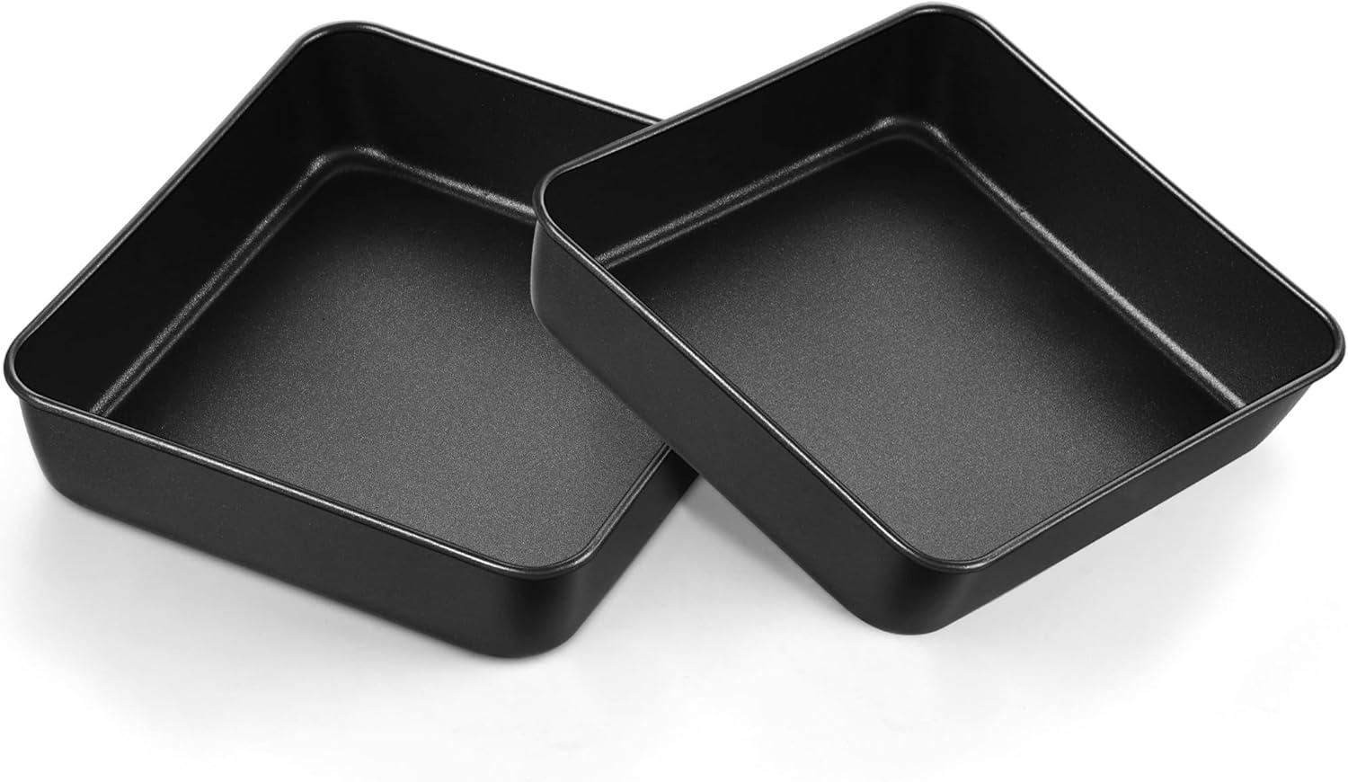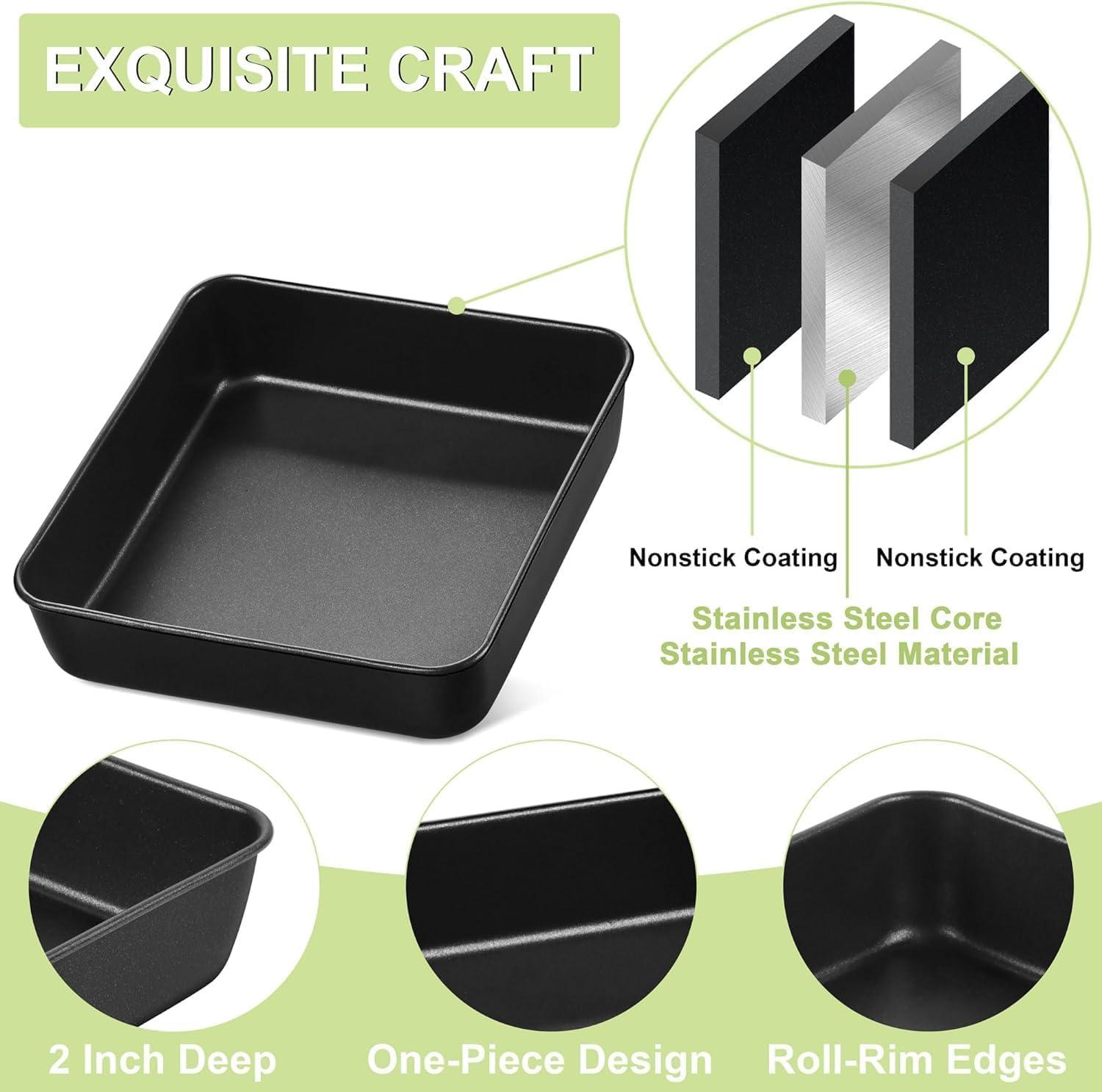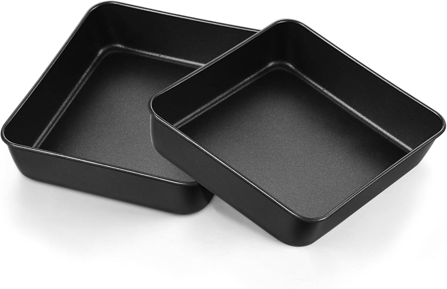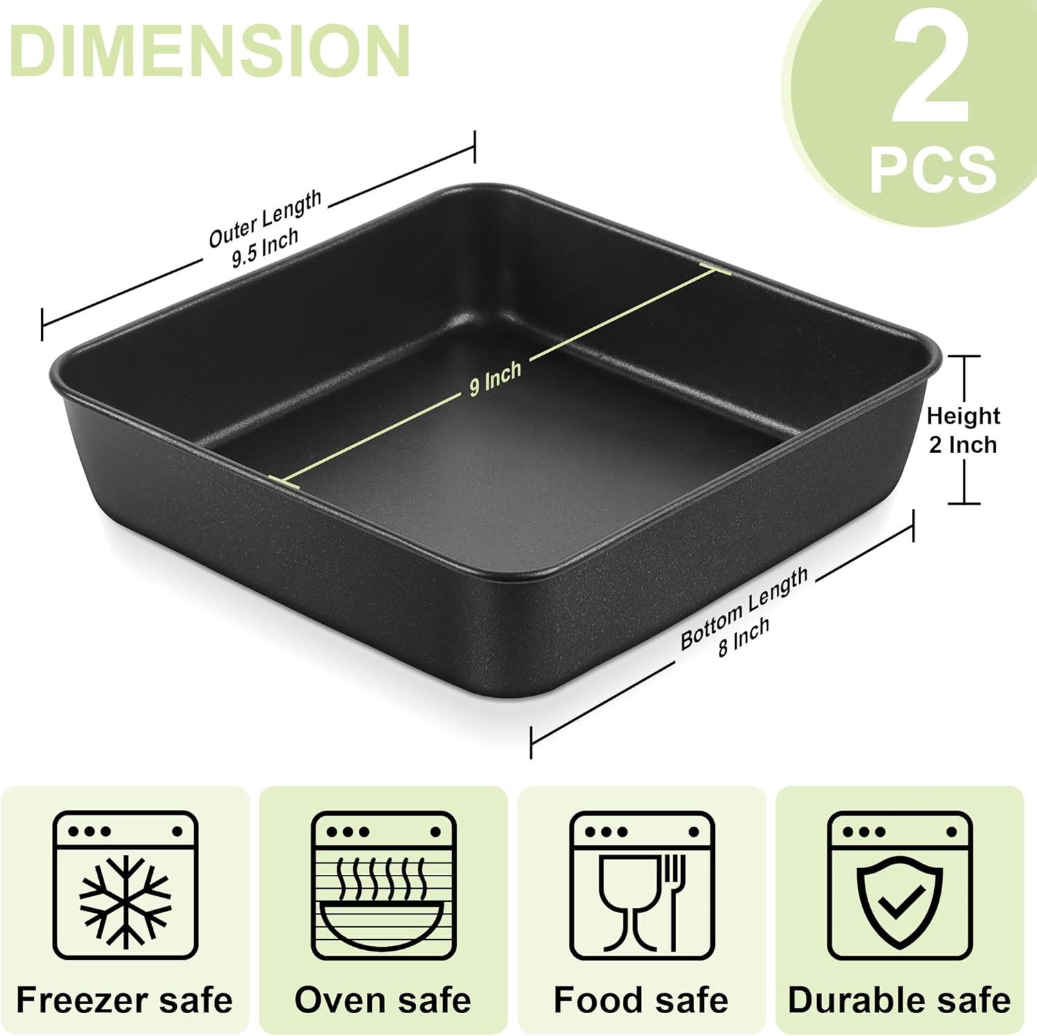 PREMIUM STAINLESS STEEL CORE: E-far 9 inch square baking pan is made of stainless steel core and toxic free coating, Don't worry about harmful substances into food during high temperature baking, Healthier than aluminum cake pans and suitable for daily baking use