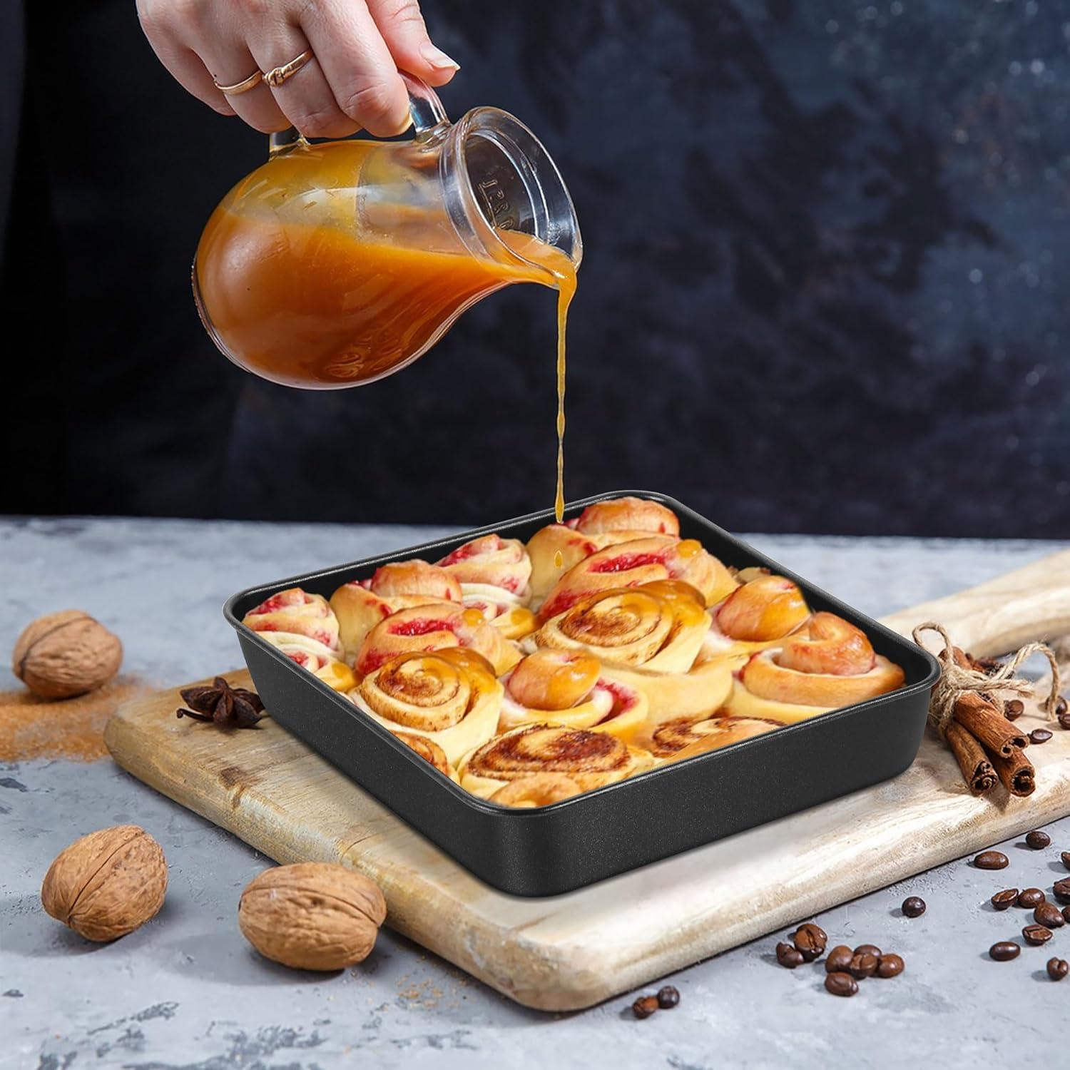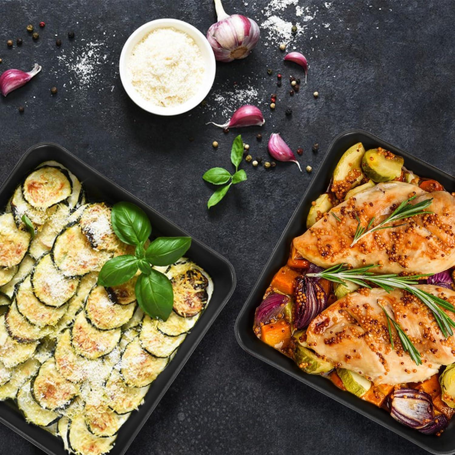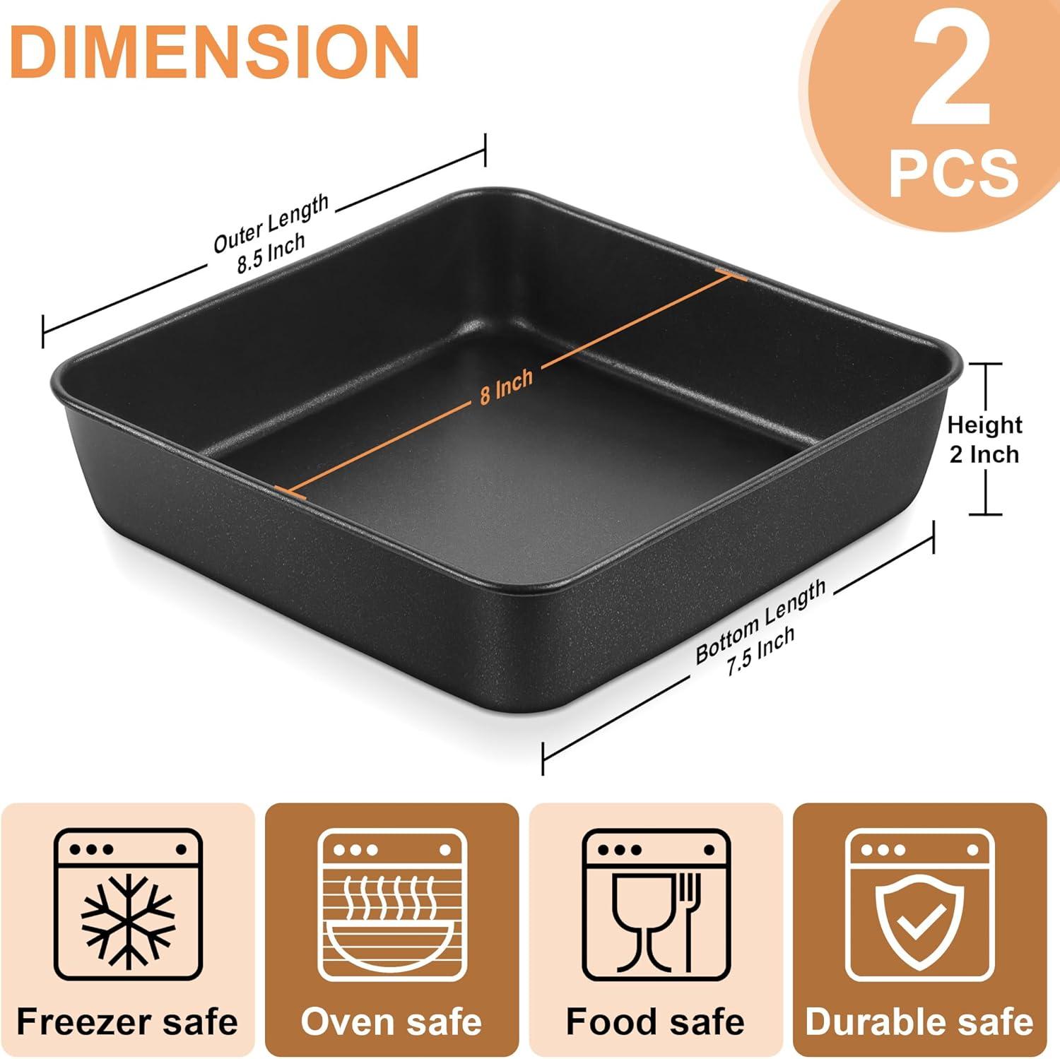 WIDE USE: Square cake pan can meet the needs of family daily baking; Make various types of pastries for family and friends at birthdays and other parties, Such as baking lasagna, brownie, casseroles, cakes, roasting bacon, It can also serving as container for foods, Great choice when baking cakes at home
