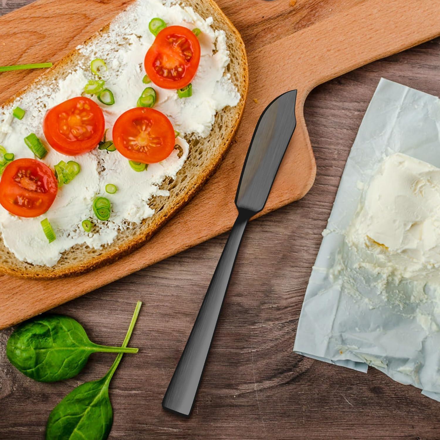 DURABLE STAINLESS STEEL: This butter spreader knife set are made of high-quality 18/0 stainless steel for rust proof, Strong enough and not easy to bent or break, Food grade stainless steel without harmful chemicals and nickel free, Non-toxic and premium metal makes it healthy and durable for long service life