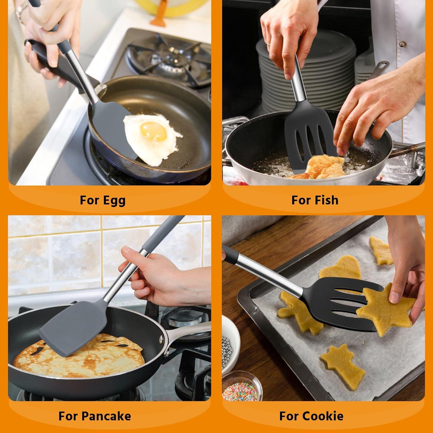 HEALTHY & SAFE SILICONE – Manufactured with premium food-grade silicone, Non-toxic, non-melting and odorless, Heat-resistant up to 446°F, Less reactive with food and last longer than plastic kitchen utensils, Healthy and durable for daily cooking use