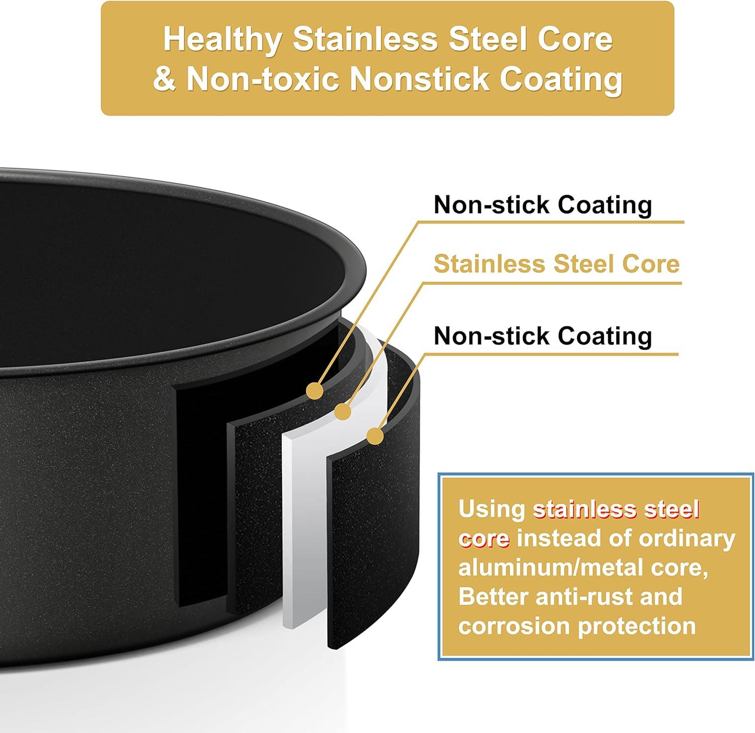 【HEALTHY STAINLESS STEEL CORE】Constructed by food-grade stainless steel core instead of traditional aluminum/metal core, Not only strengthen rust and corrosion resistant, But also avoid toxic substance releasing to your cakes in the heat, Healthier alternative to aluminum/metallic cake pan