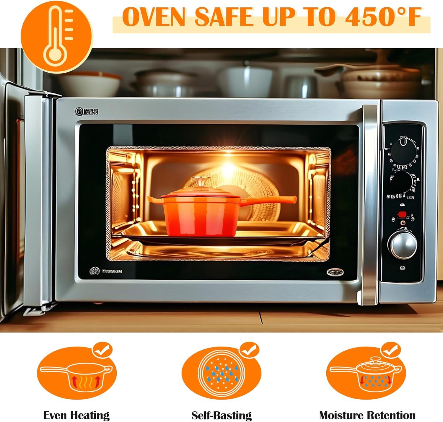 MULTI-PURPOSE SAUCEPAN: 2 quart saucepan can be used to boil water/eggs, heat up milk/soup, cook oatmeal, melt butter/sugar or make stovetop coffee, Suitable for induction cookers, gas stoves, ceramic stoves, glass stoves, halogen stoves and other stoves, The oven is safe to 450 degrees Fahrenheit and is a perfect addition to any kitchen