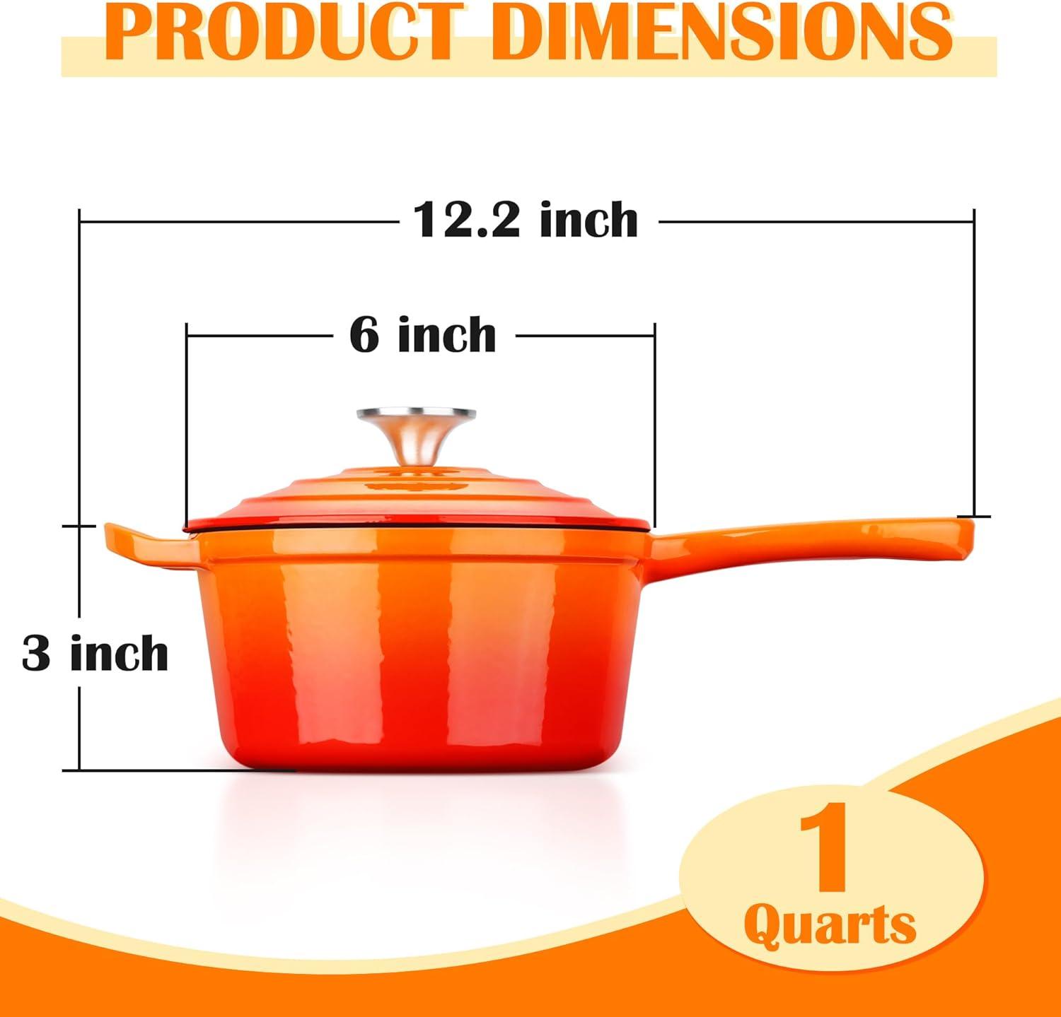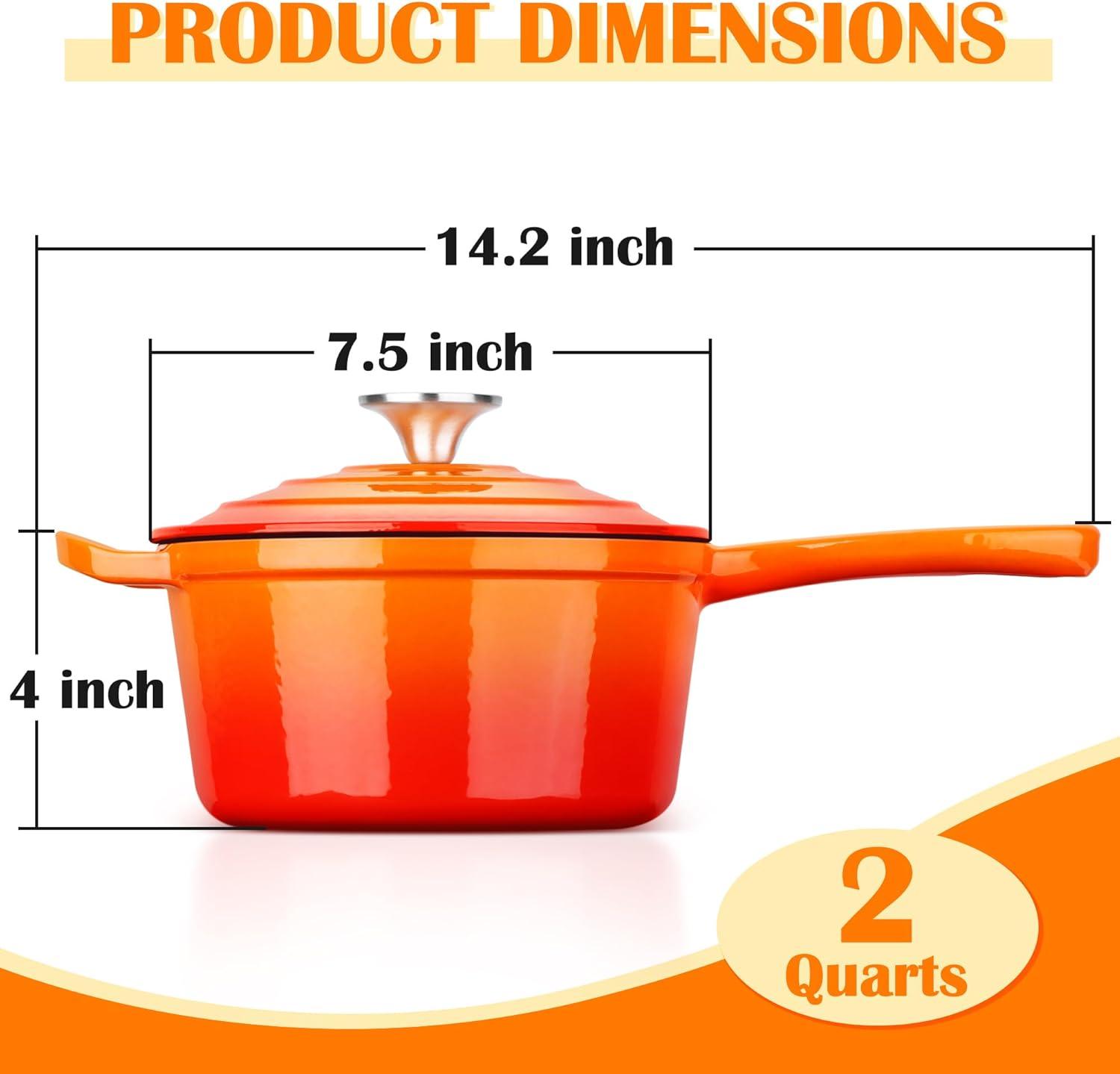imageEfar Enameled Cast Iron Sauce Pan 2 Quart Dutch Oven Saucepan with Lid Small Sauce Pot for Cooking Boiling Healthy ampamp Non Toxic Induction ampamp Oven Safe Light BlueOrange