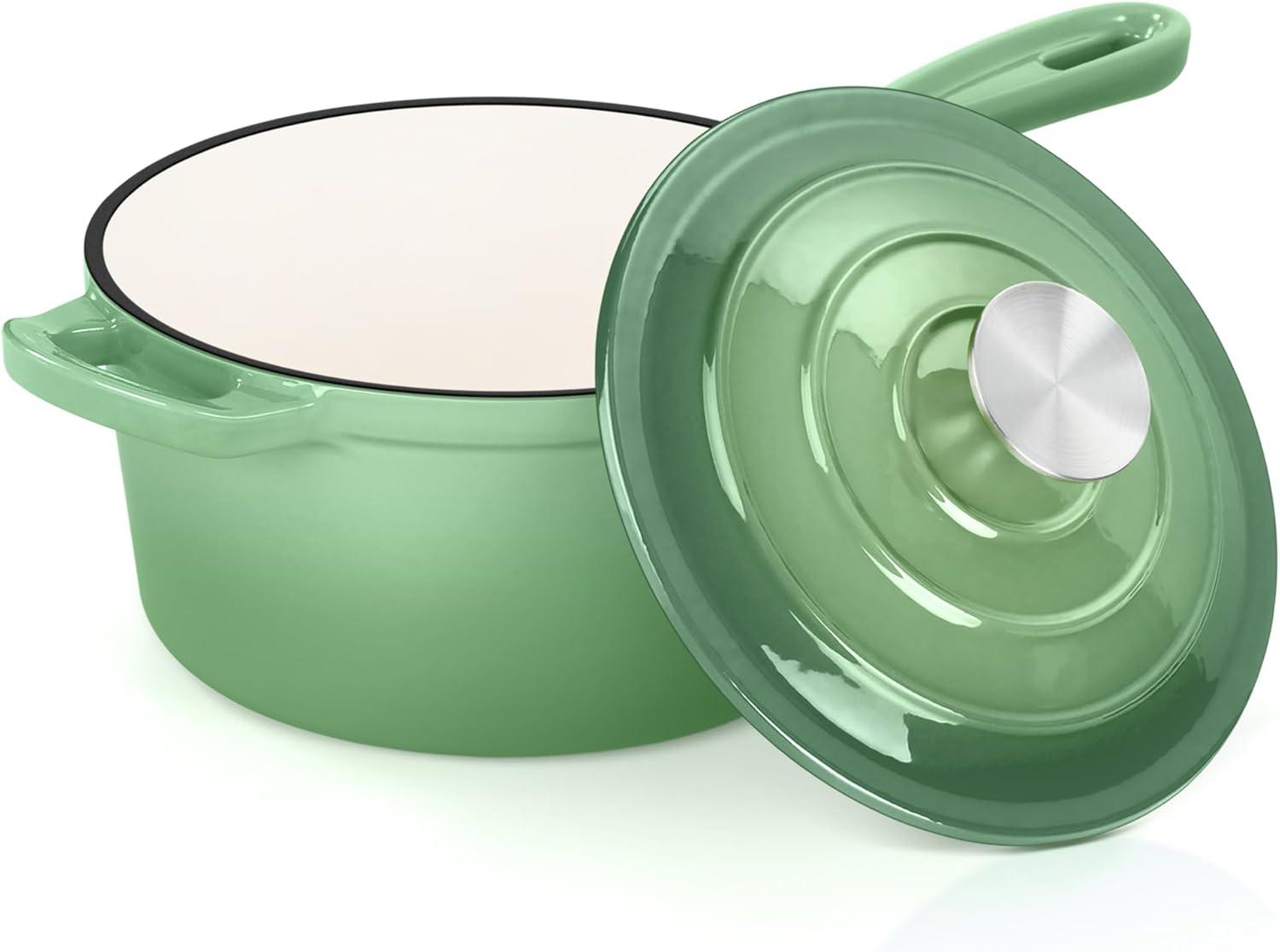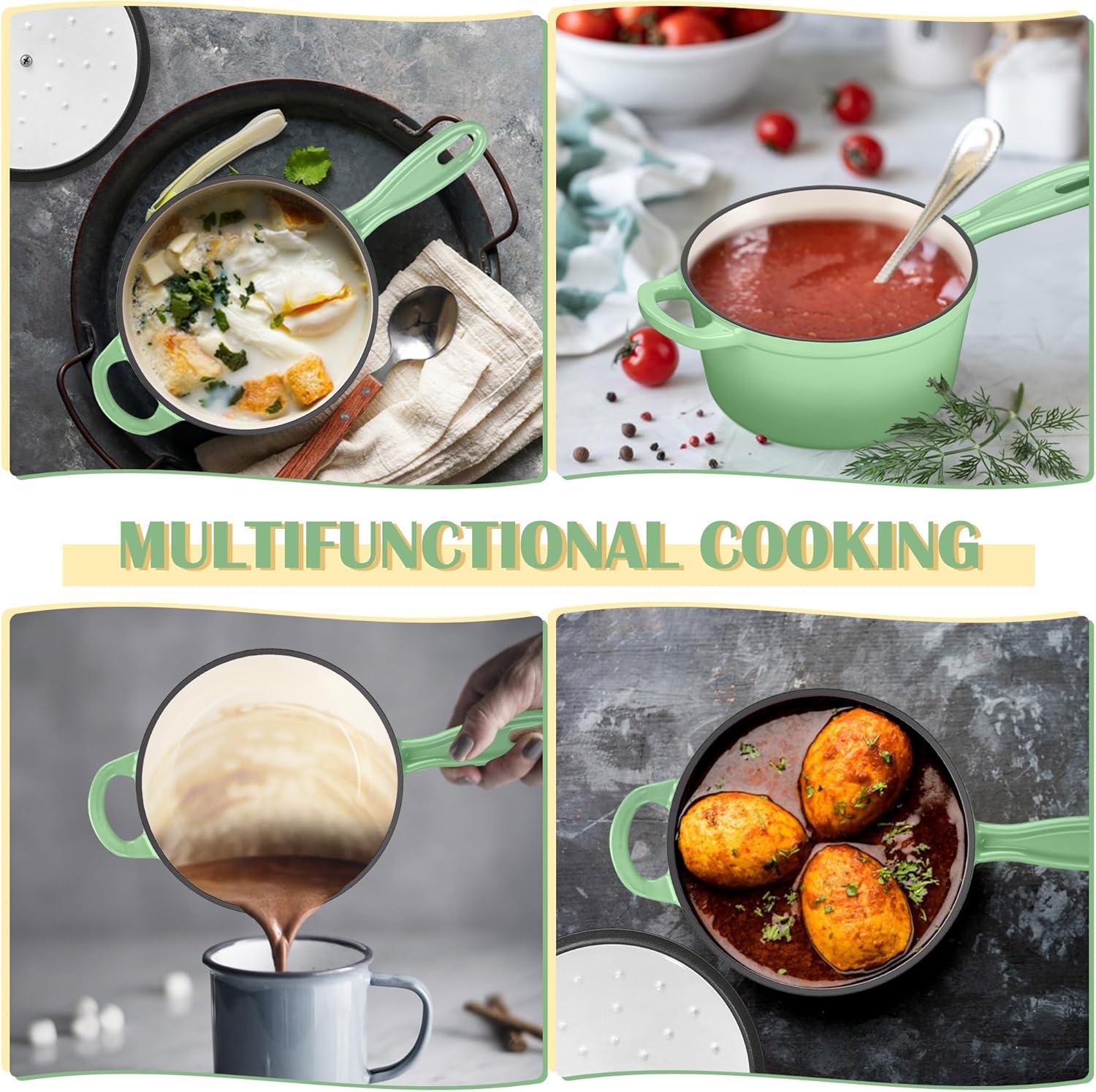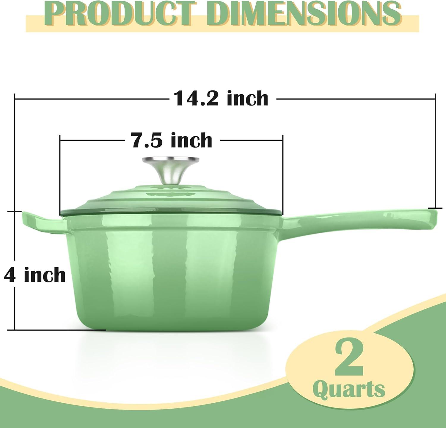 imageEfar Enameled Cast Iron Sauce Pan 2 Quart Dutch Oven Saucepan with Lid Small Sauce Pot for Cooking Boiling Healthy ampamp Non Toxic Induction ampamp Oven Safe Light BluePistachio Green