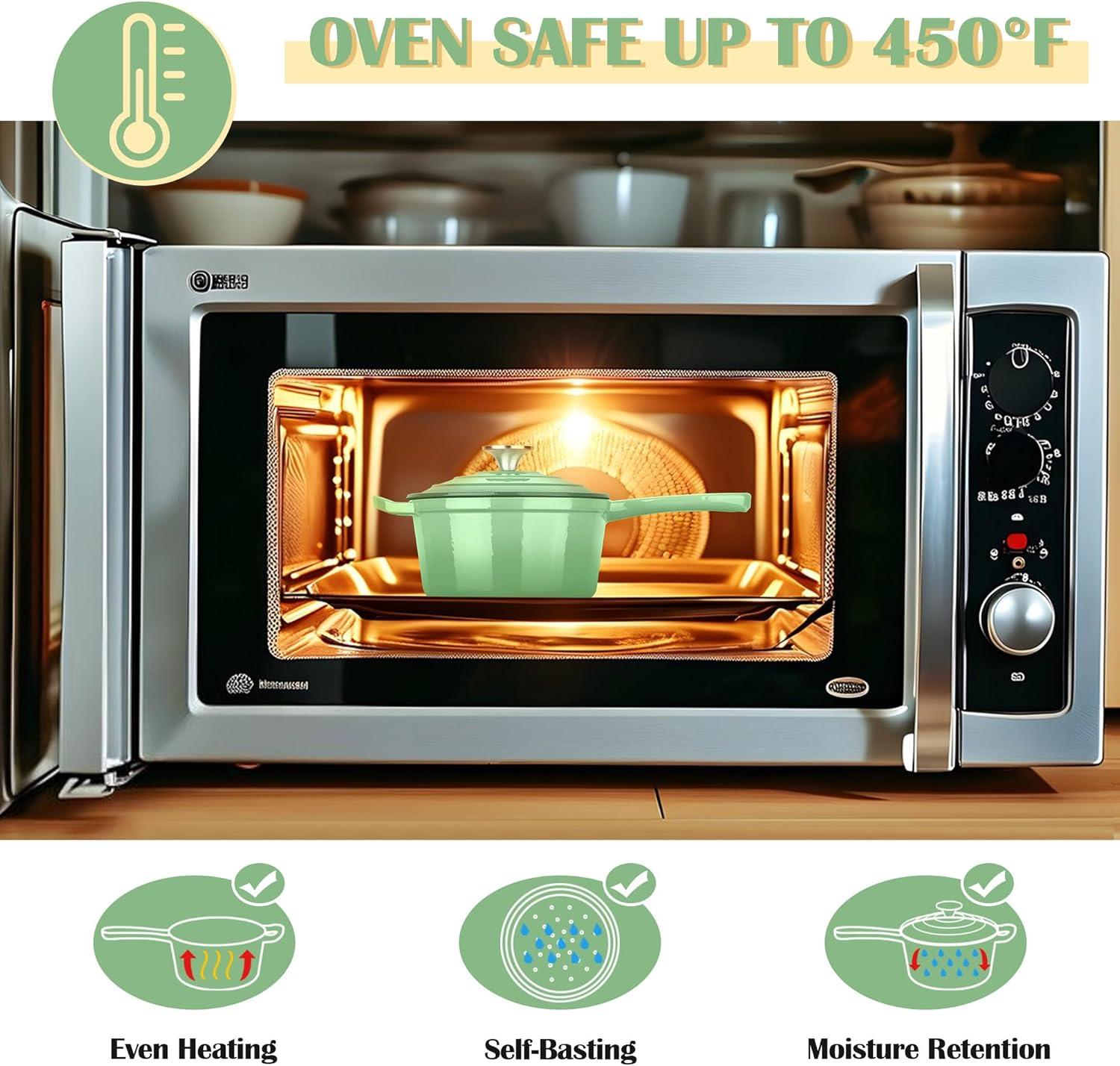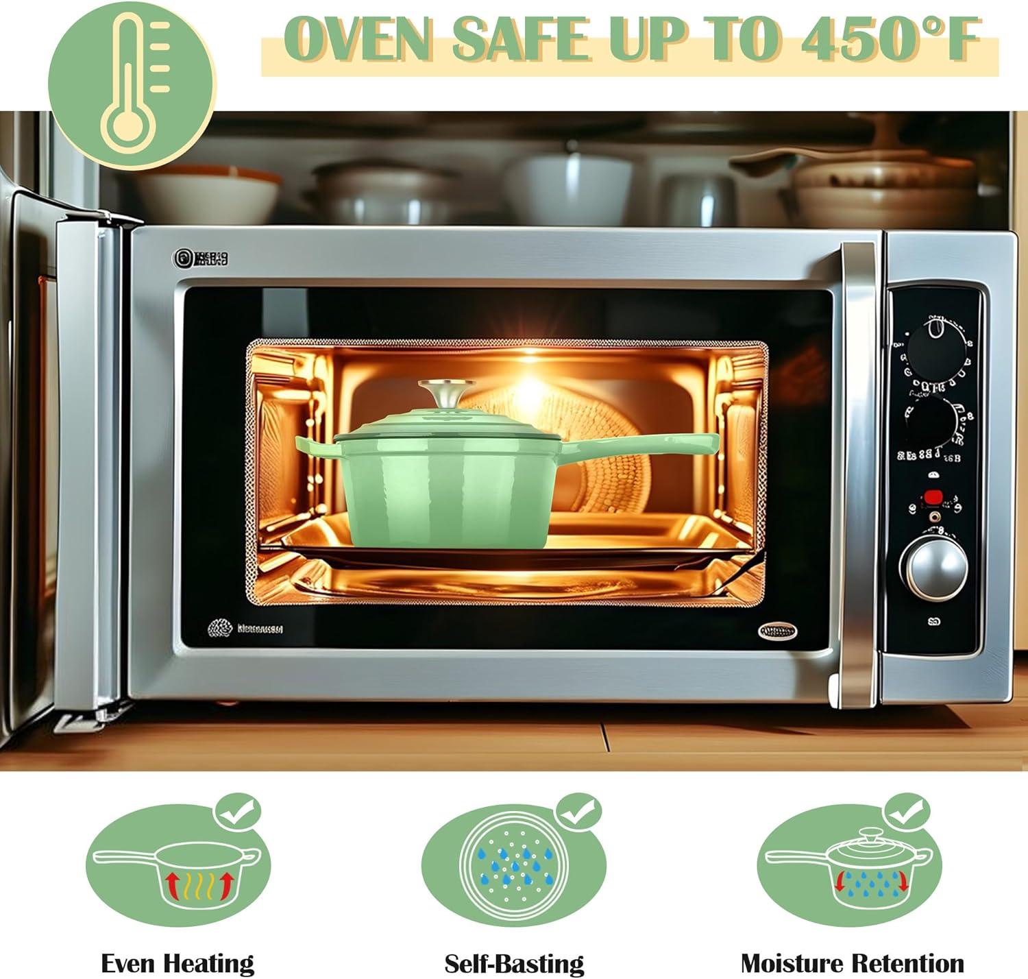 MULTI-PURPOSE SAUCEPAN: 2 quart saucepan can be used to boil water/eggs, heat up milk/soup, cook oatmeal, melt butter/sugar or make stovetop coffee, Suitable for induction cookers, gas stoves, ceramic stoves, glass stoves, halogen stoves and other stoves, The oven is safe to 450 degrees Fahrenheit and is a perfect addition to any kitchen