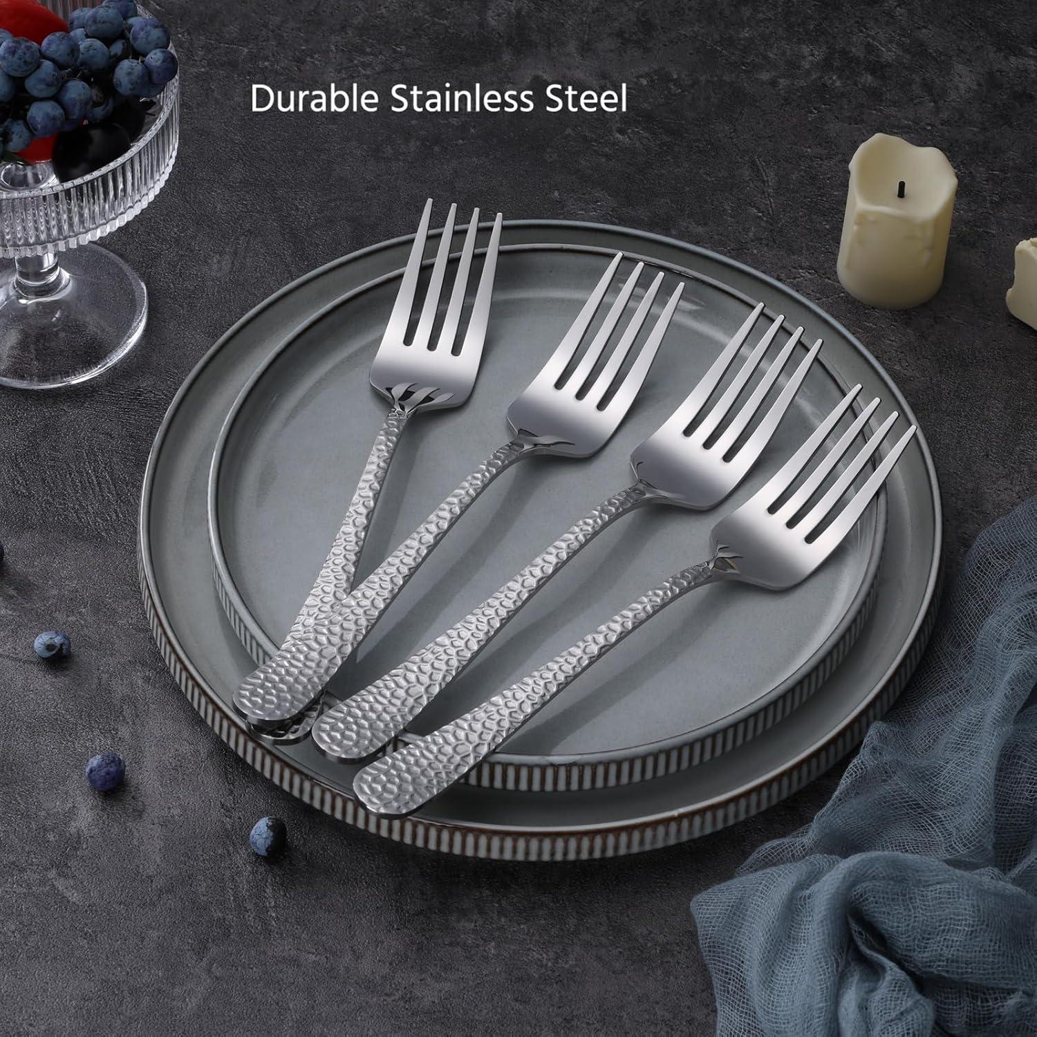 3. Elegant Hammered Design – Unique square handles with hammered pattern, stylish for any table setting.
