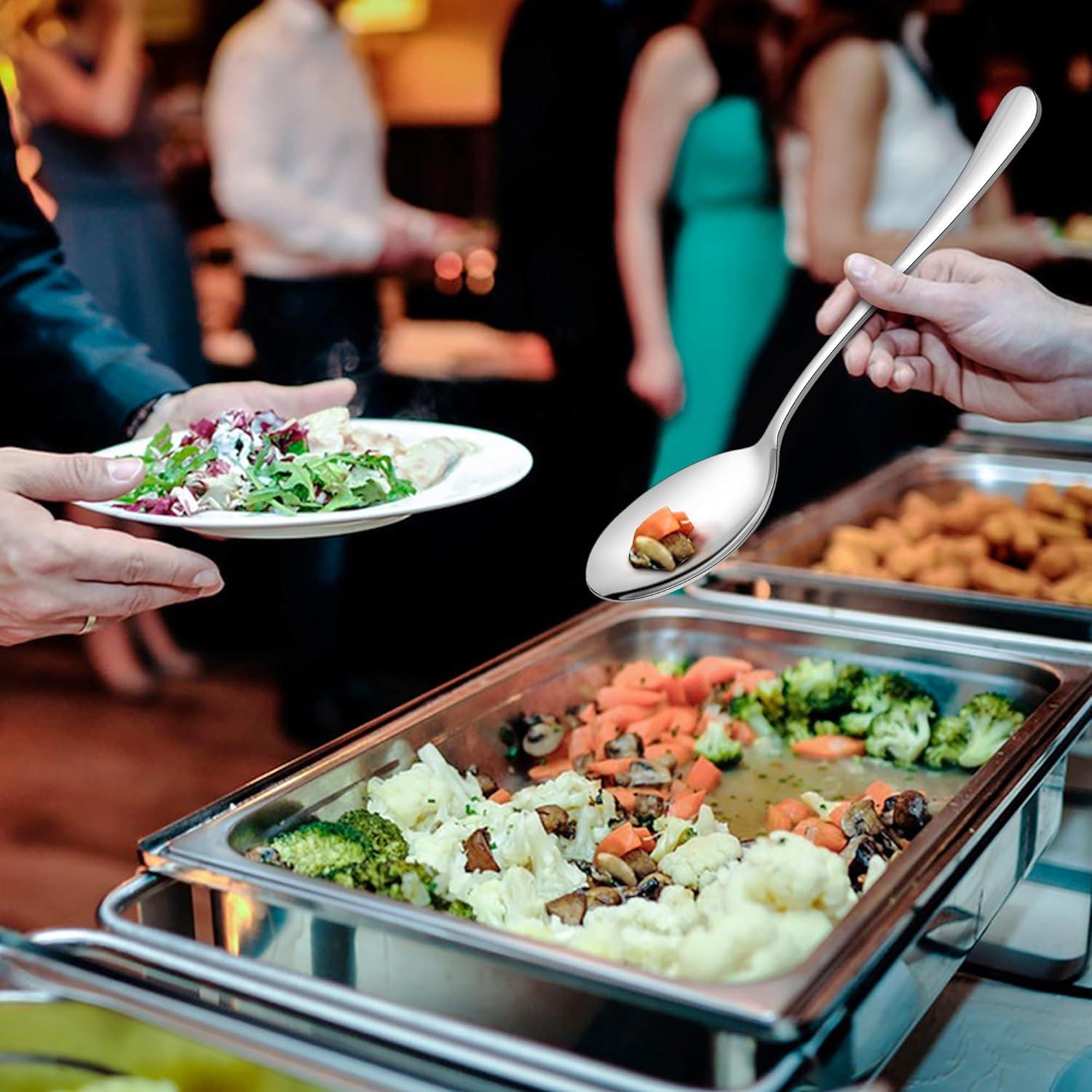 PREMIUM STAINLESS STEEL: Serving utensils set is made of high-quality food grade stainless steel to ensures durability and rust resistance, Not easily rust or bent, Ideal for daily use in restaurants, hotels, home kitchen