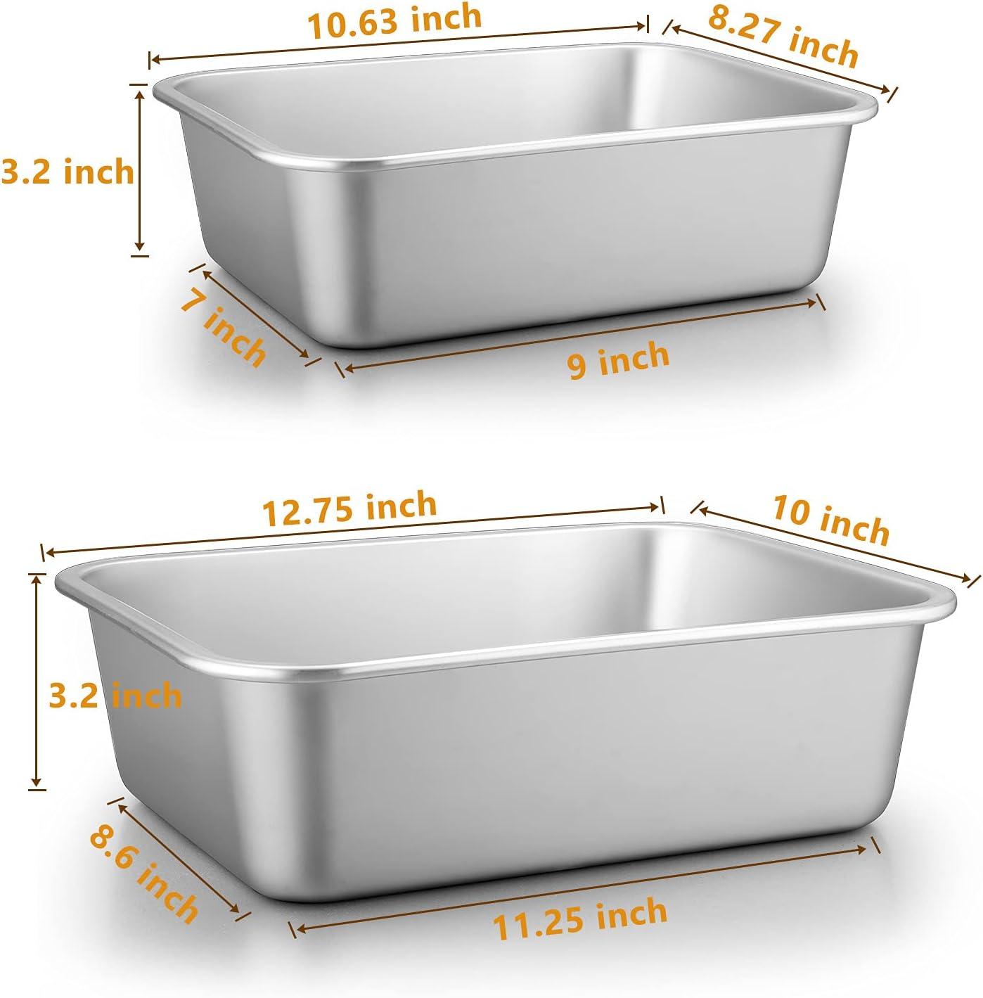 E-far Lasagna Pan Set of 2, Deep Stainless Steel Baking Pans, 12.75 x10 x3.2 Inches Rectangular Metal Roasting Baking Dish Bakeware for Oven, Non-Toxic & Heavy Duty, Dishwasher Safe(10.6" x 8.3" & 12.75" x 10")