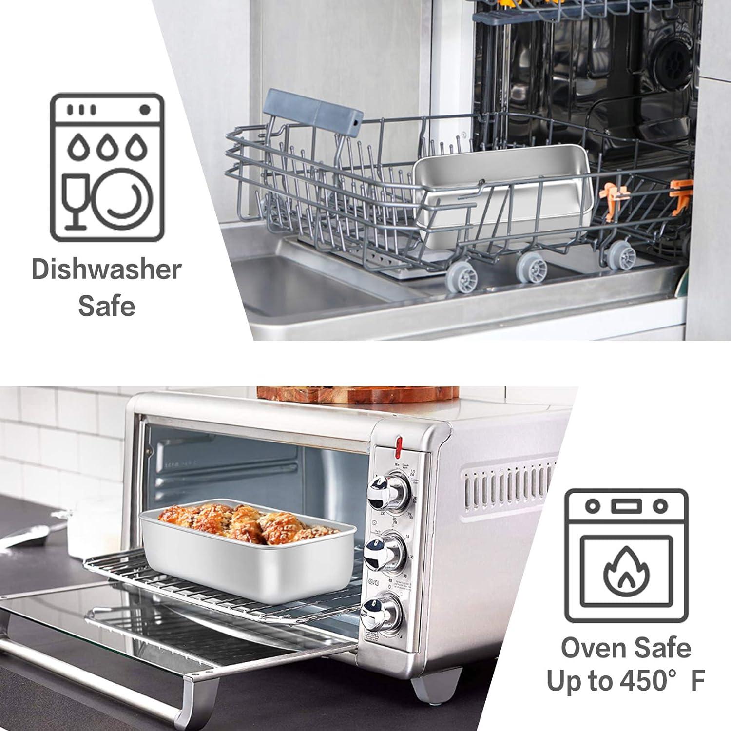 EASY TO CLEAN: It’s seamless rounded corners and mirror-polished interior reduces food sticking and facilitate easy bread removal, Making it easily to get all the little corners clean and dishwasher safe, For best release: Lightly grease before use