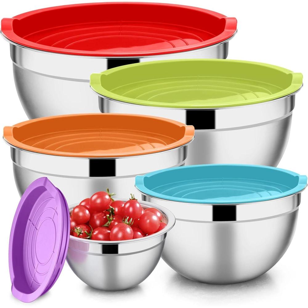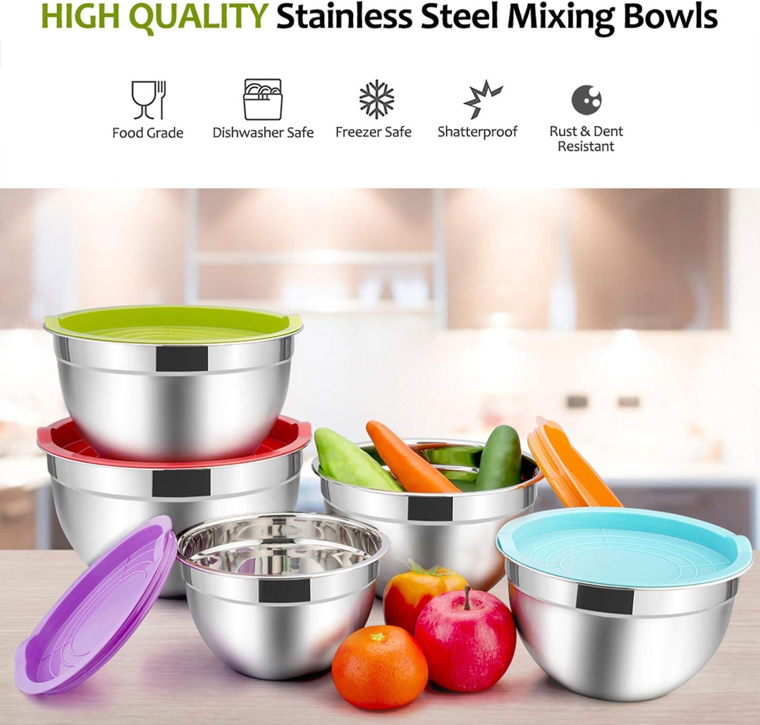 imageEfar Mixing Bowls with Lids Set of 5 Stainless Steel Mixing Bowls Metal Nesting Bowls with Airtight Lids Nontoxic ampamp Dishwasher Safe Great for Cooking Baking Serving  Size 07115346QTColorful