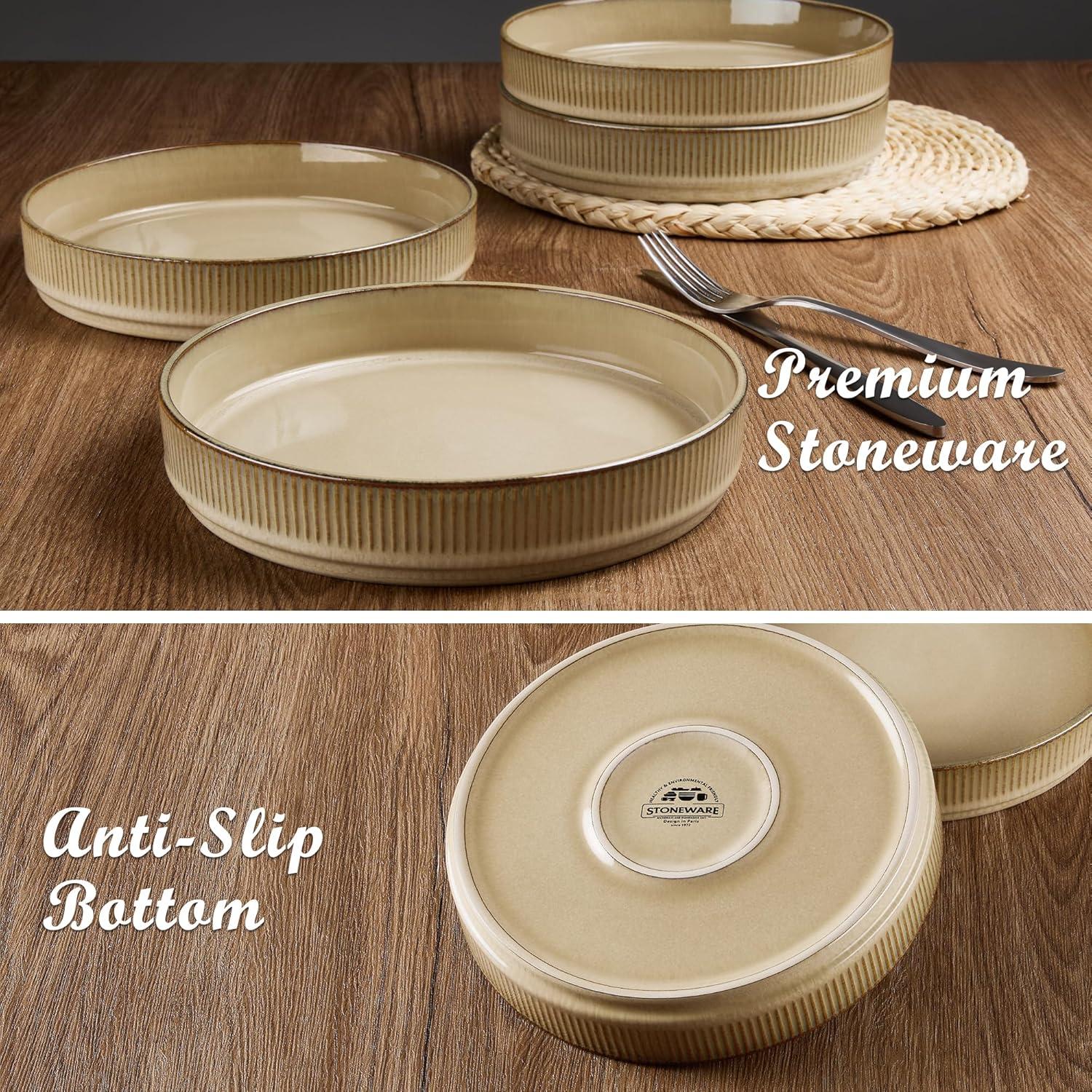 PREMIUM & HEALTHY STONEWARE: Our dinner bowl plates are made from natural clay that free from lead and cadmium, Applied with a glossy food safe glaze, Fired at high temperatures 2340°F, resulting in a sturdy, long-lasting, scratch & chip resistant pasta plate, Healthy and safe for everyday kitchen use
