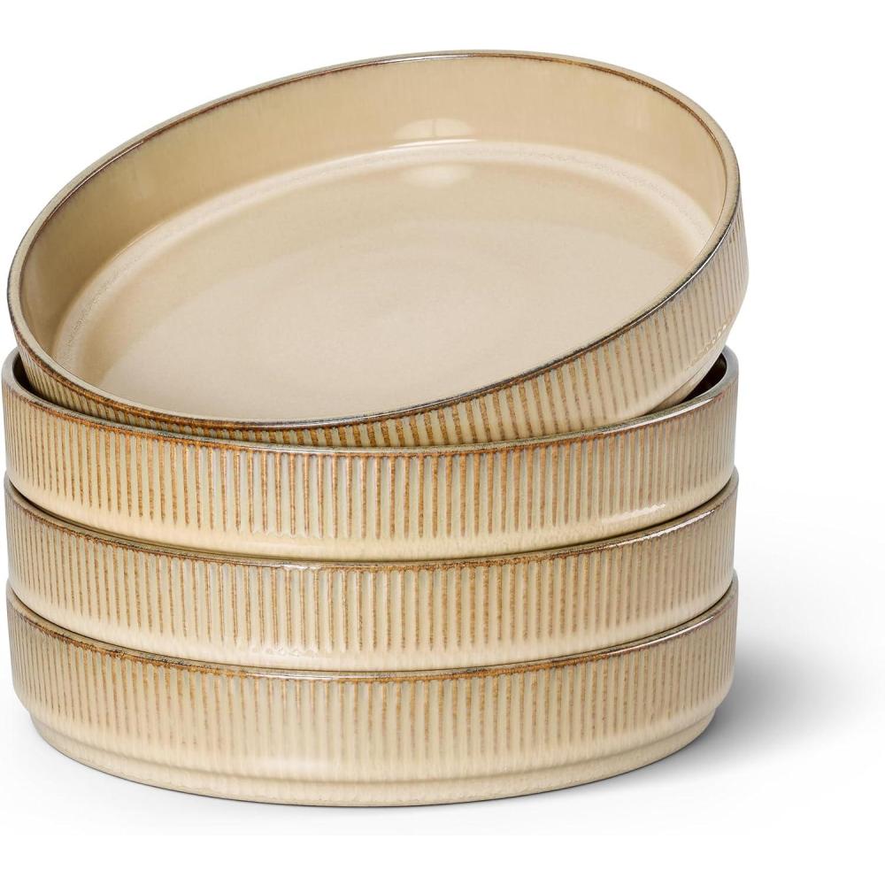 imageEfar Pasta Bowls Set of 6 35oz Large Salad Bowl Plate for Dinner Serving Soup Wide ampamp Shallow Ceramic Stoneware Pasta Plates Microwave ampamp Dishwasher Safe Textured Stripes ampamp Speckled White 8Creamy Beige
