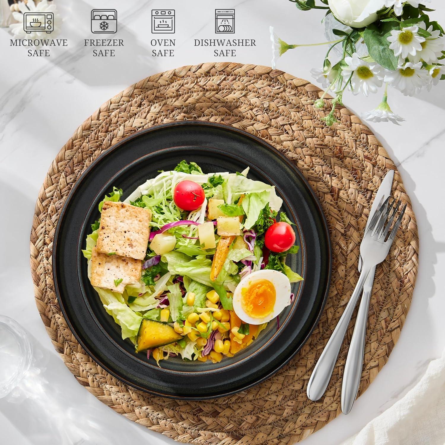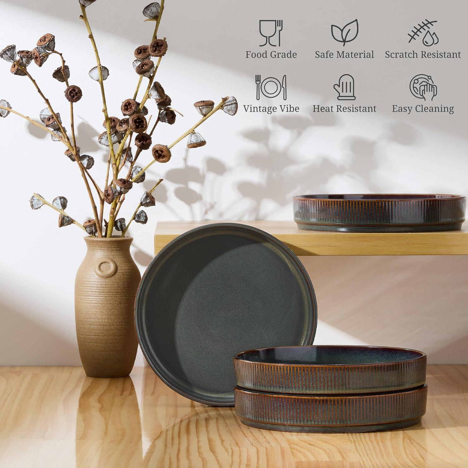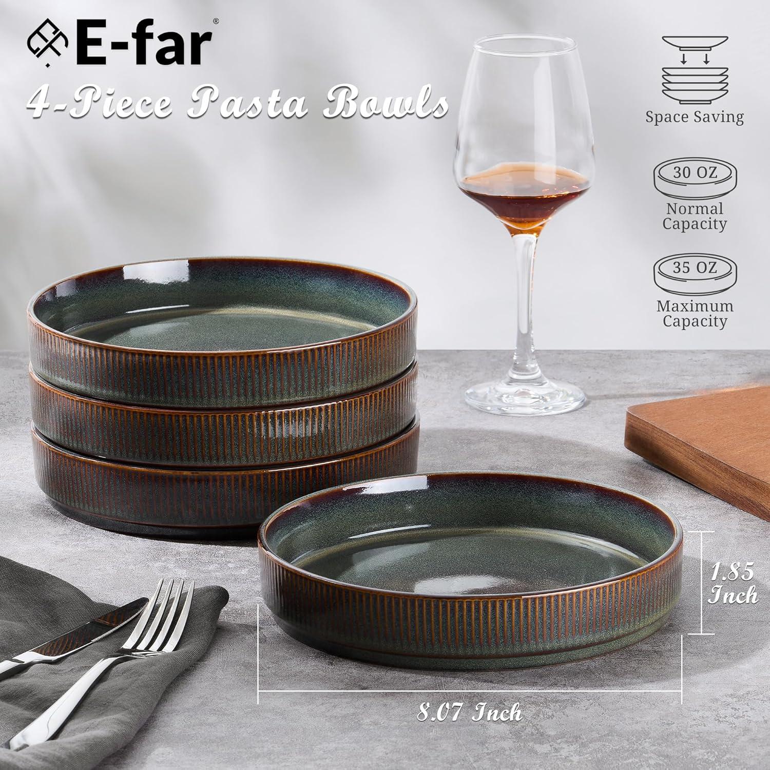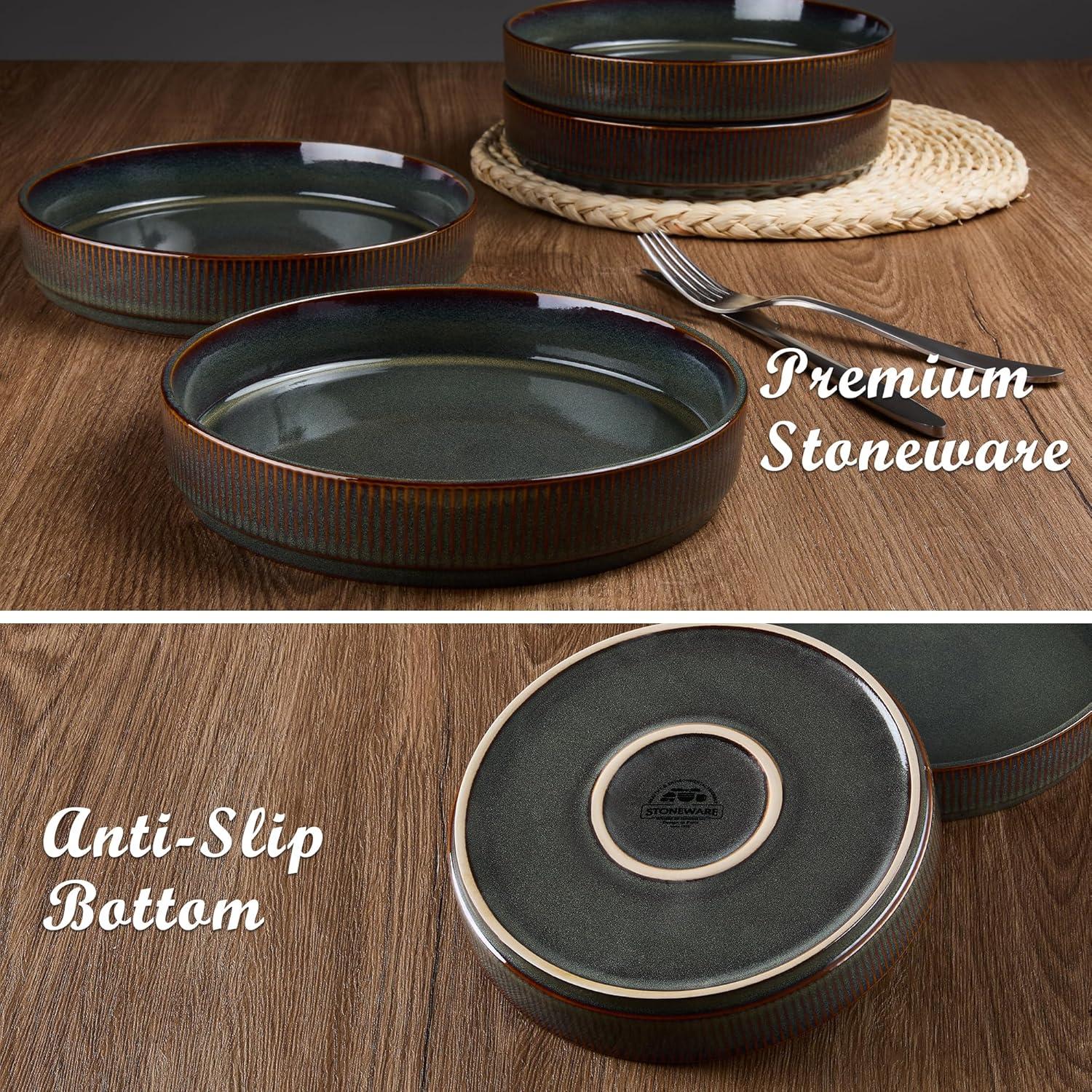 PREMIUM & HEALTHY STONEWARE: Our dinner bowl plates are made from natural clay that free from lead and cadmium, Applied with a glossy food safe glaze, Fired at high temperatures 2340°F, resulting in a sturdy, long-lasting, scratch & chip resistant pasta plate, Healthy and safe for everyday kitchen use
